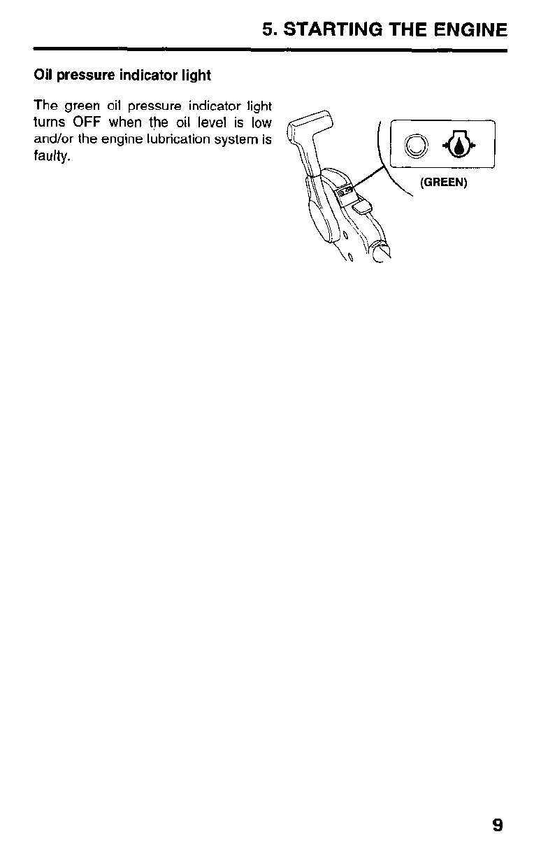Stop the engine if the oil pressure indicator light does not turn ON. Check the