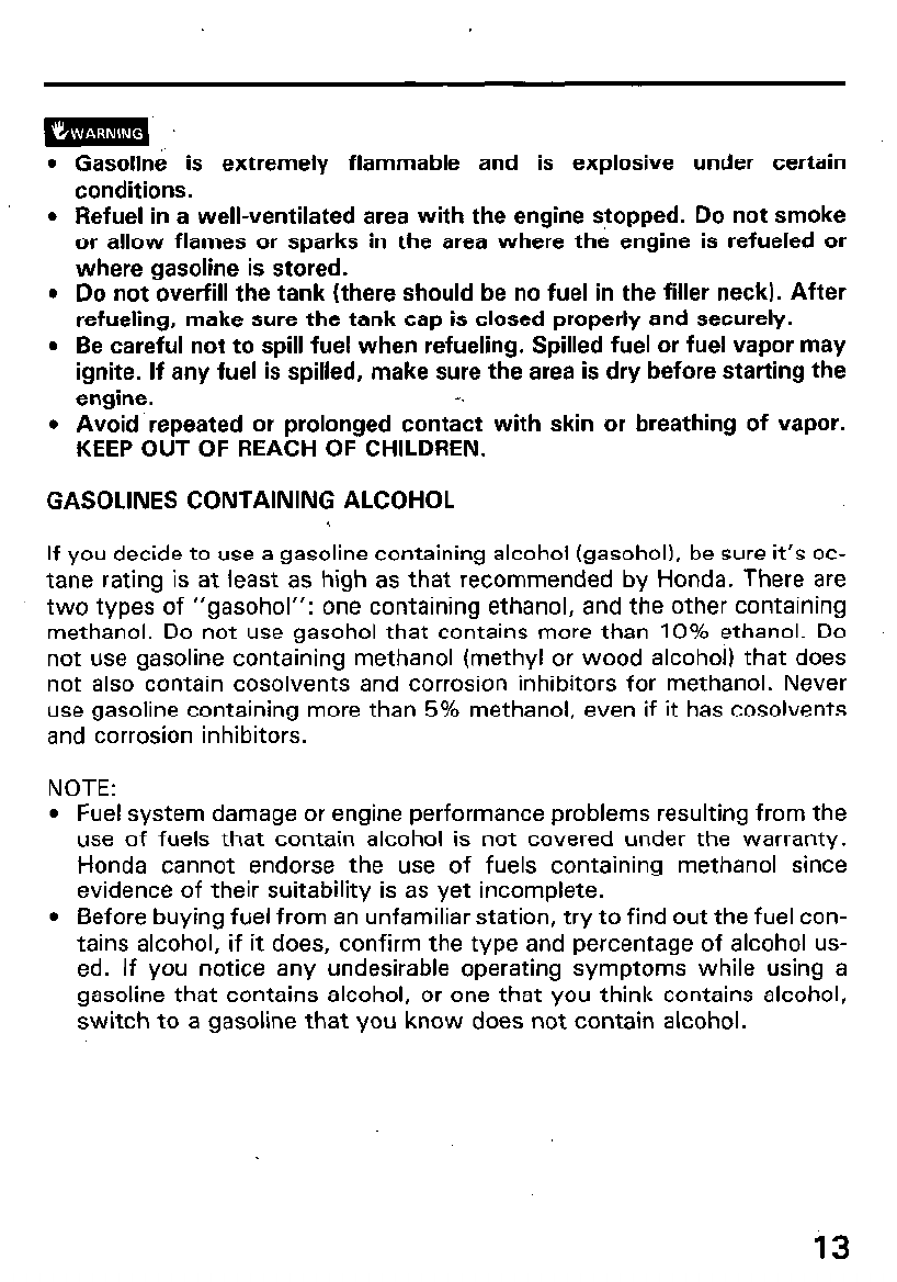 tions. Refuel in a well ventilated area with the engine stopped. Do not