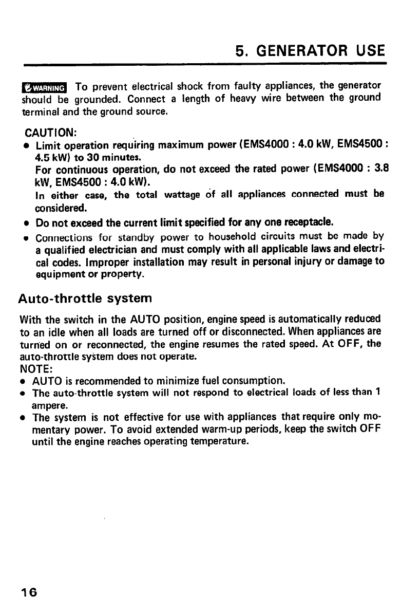 5. GENERATOR USE ....................................... 16