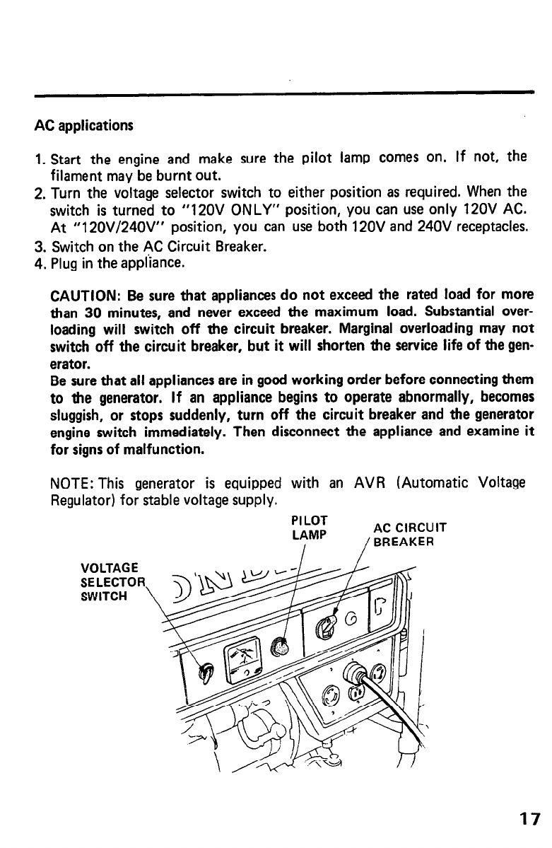 Be sure that pilot lamp comes on when the engine starts.