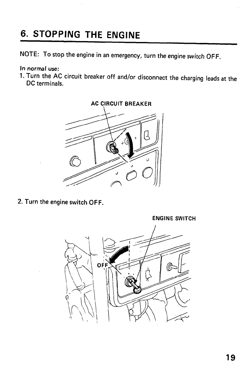 6. STOPPING THE ENGINE .... ;. ............................ 19