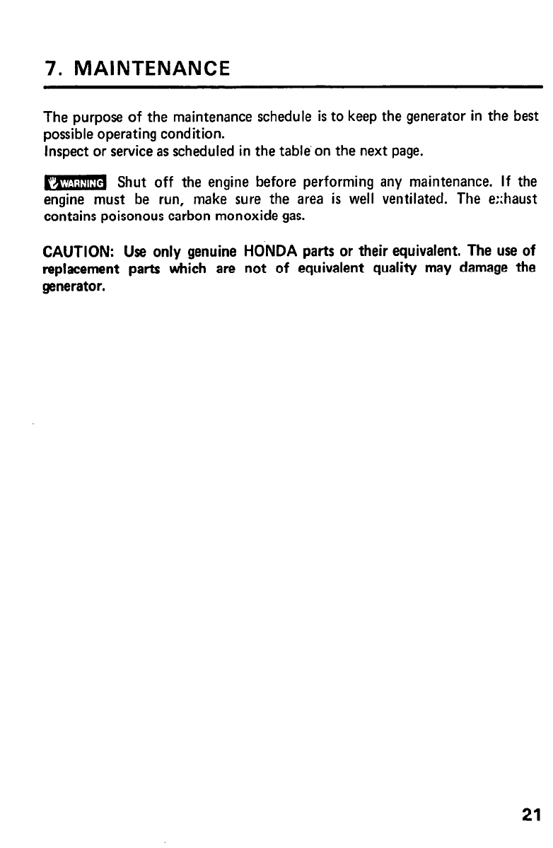 7,MAlNTENANCE ......................................... 21
