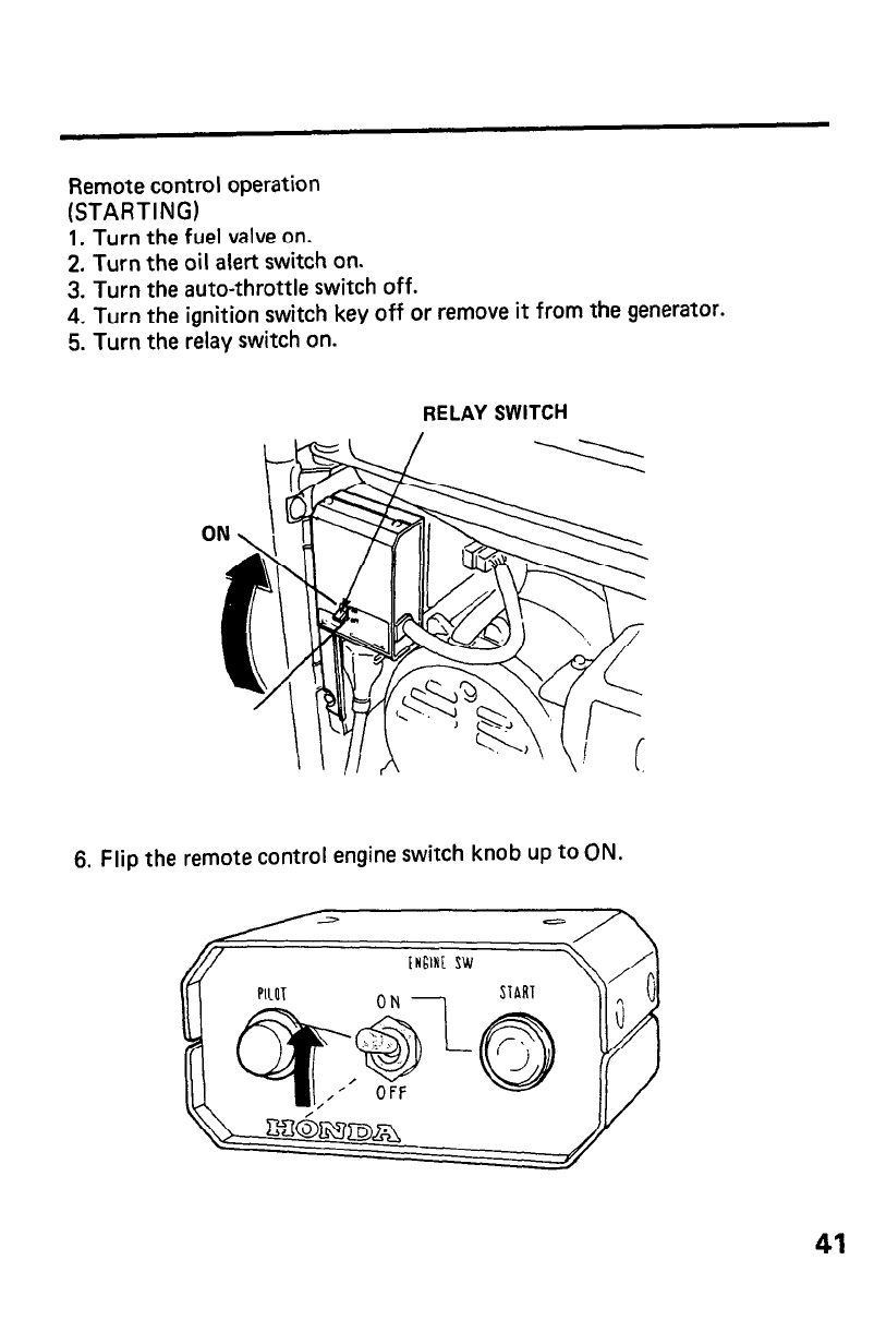 4. Turn the ignition switch key off or remove it from the generator.