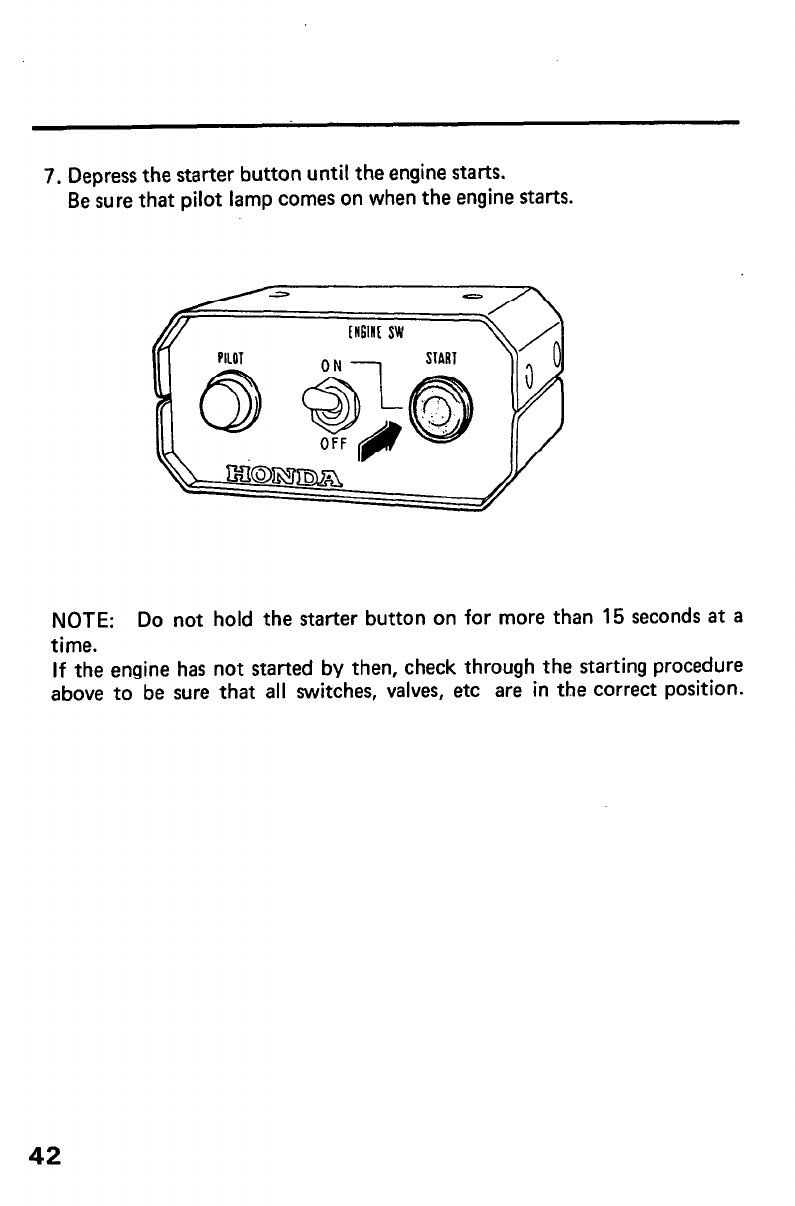 NOTE: Do not hold the starter button on for more than 15 seconds at a