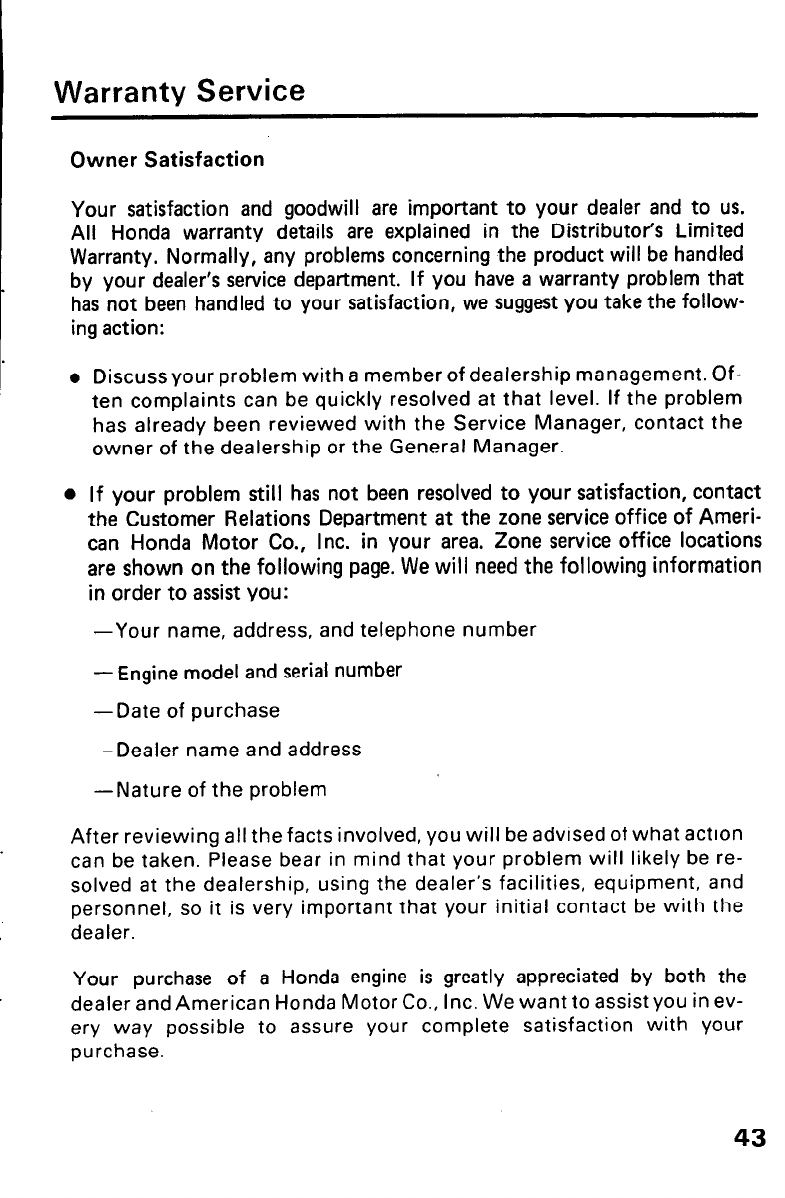 All Honda warranty details are explained in the Distributor’s Limited