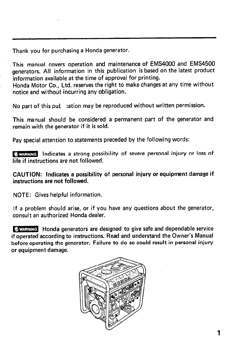 Your purchase of a Honda engine is greatly appreciated by both the