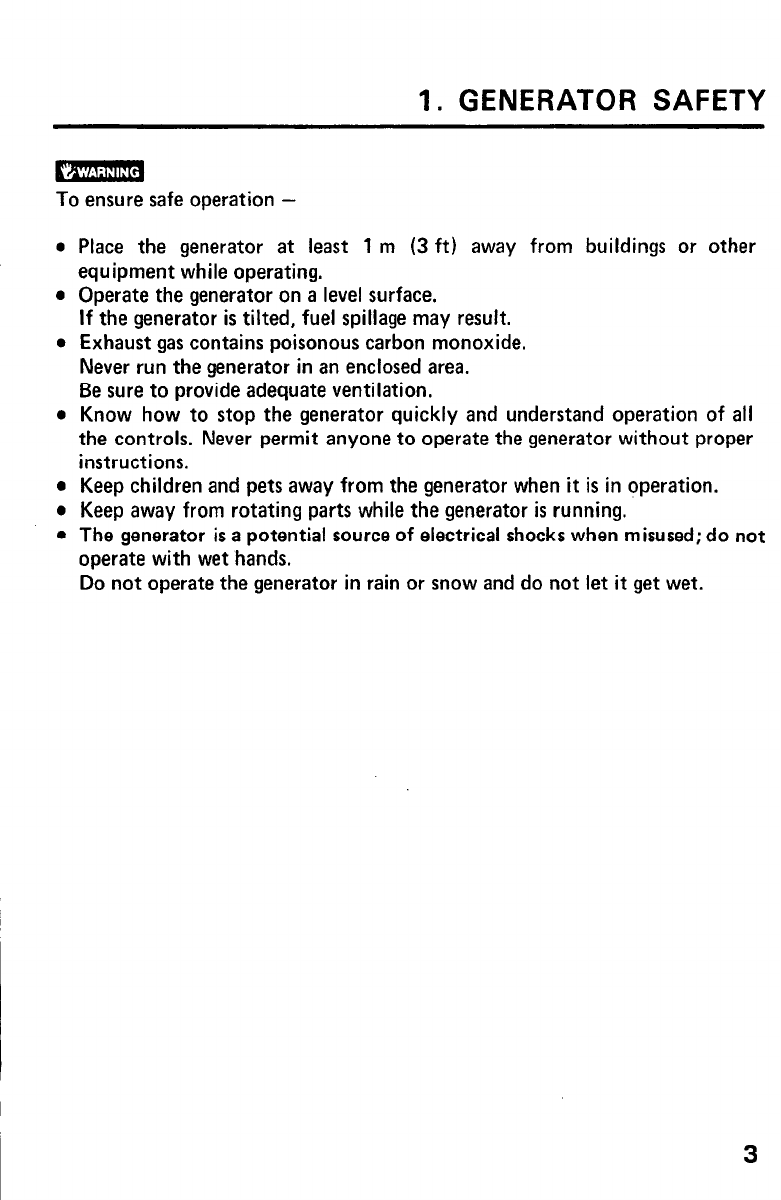 1. GENERATOR SAFETY ................................... 3