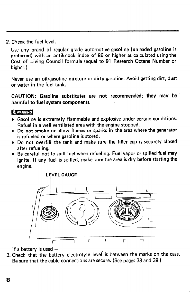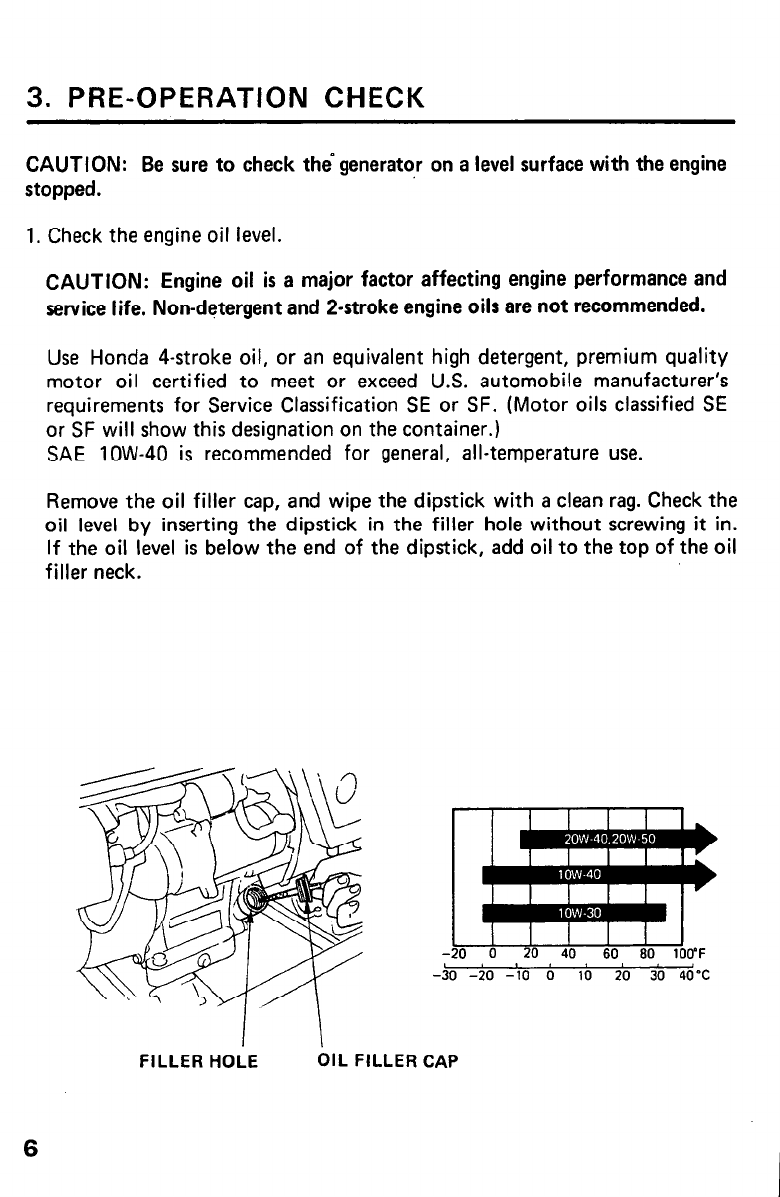 CAUTION: Be sure to check the generatot- on a level surface with the engine