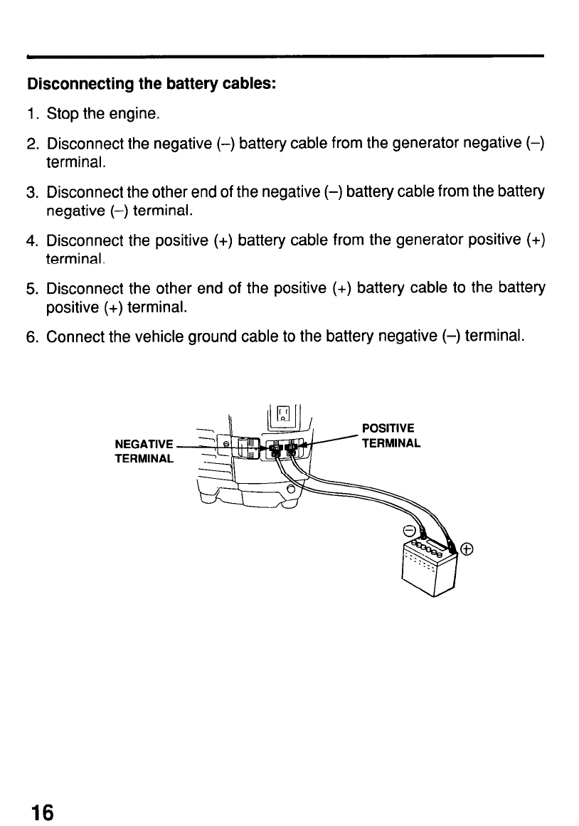Disconnecting the battery cables .................................................... .16