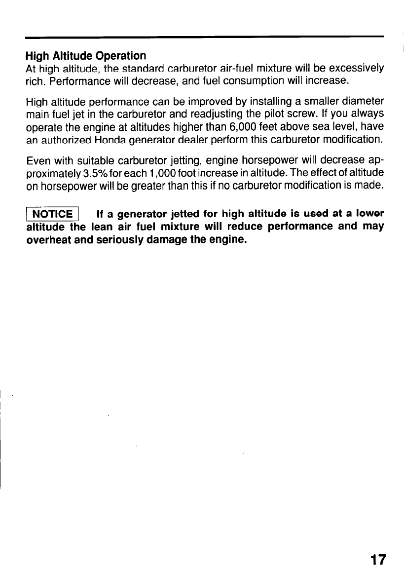 High Altitude Operation .......................................................... . ...... 17
