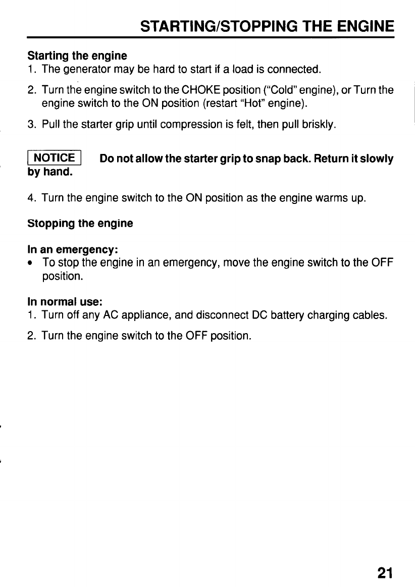 STARTING/STOPPING THE ENGINE ................................................. 21