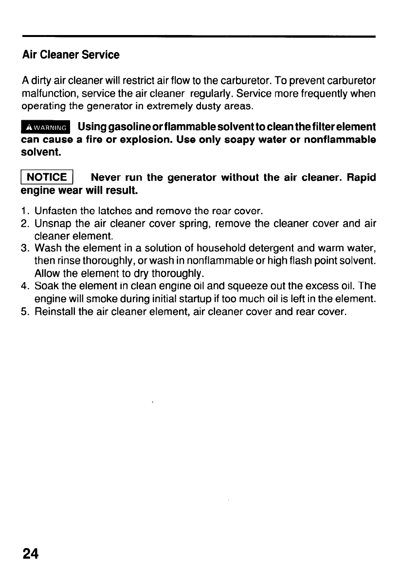Air Cleaner Service ...................................................................... .25