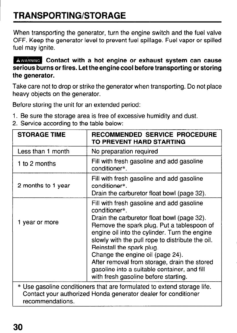 TRANSPORTING/STORAGE.. .......................................................... 30