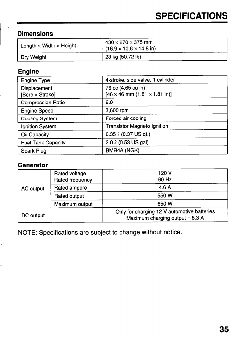 SPECIFICATIONS ............................................................................ .35