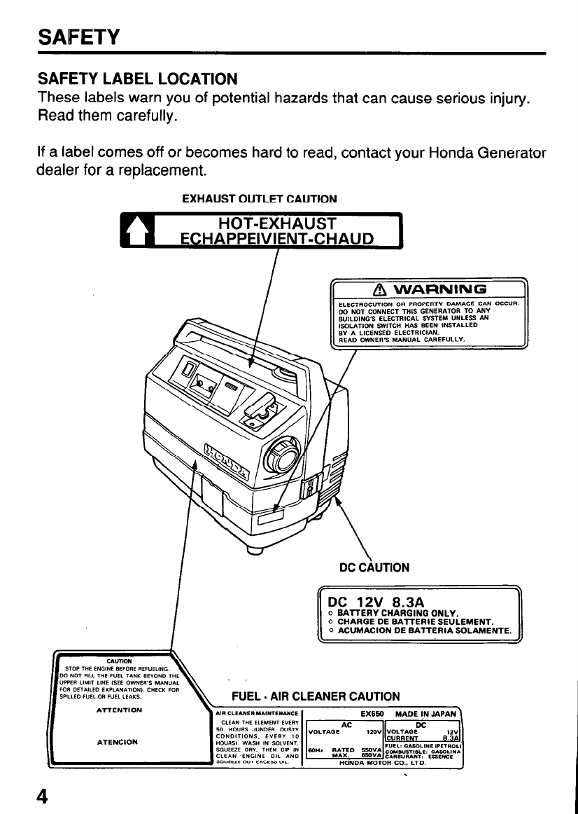 If a label comes off or becomes hard to read, contact your Honda Generator