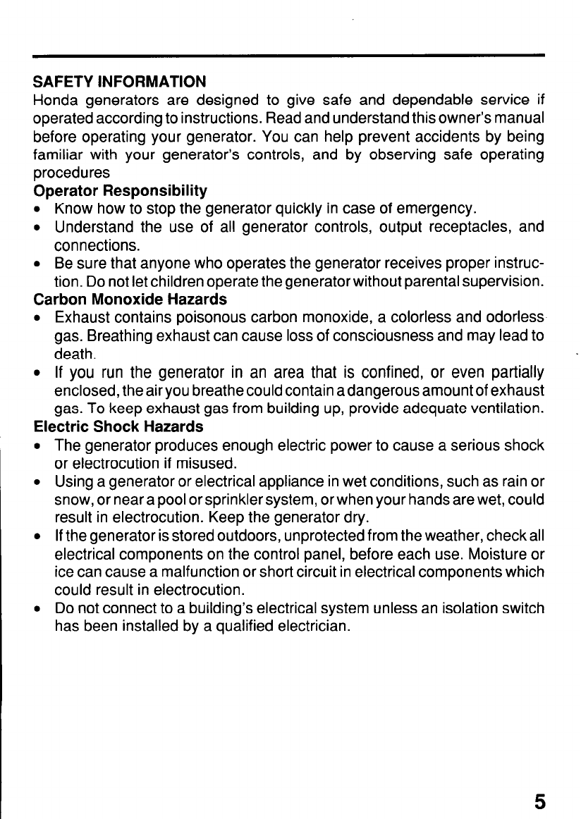 Honda Generator. All information in this publication is based on the latest