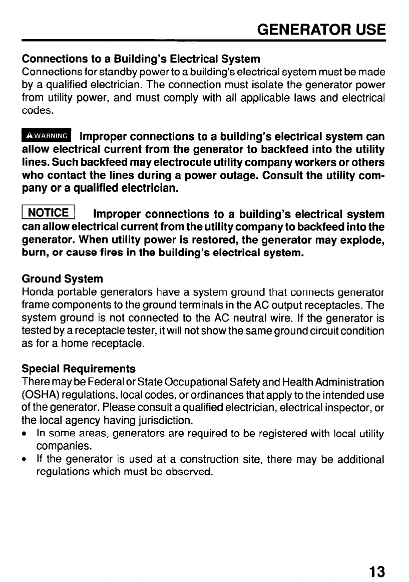 GENERATOR USE .............................................................................. 13