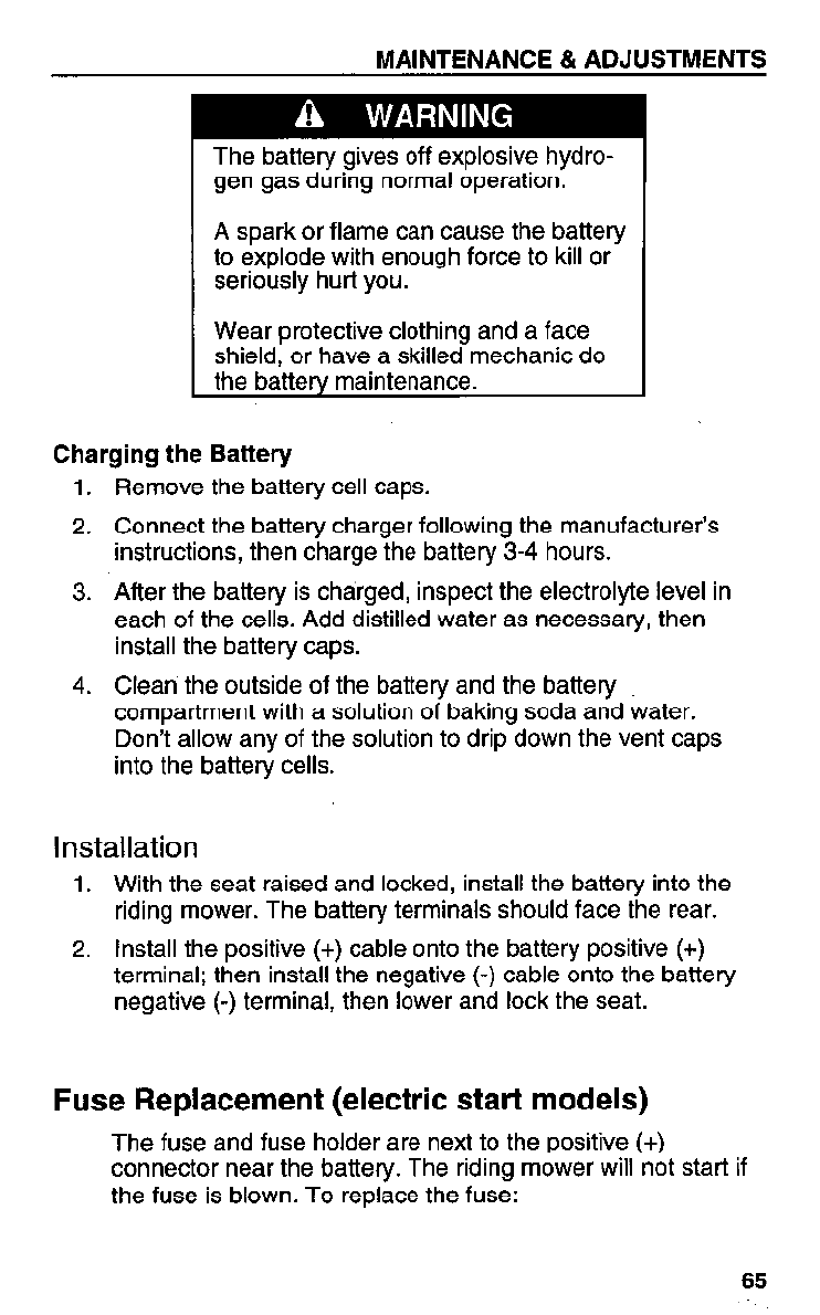- BATTERY SERVICE (ELECTRIC START MODEL)