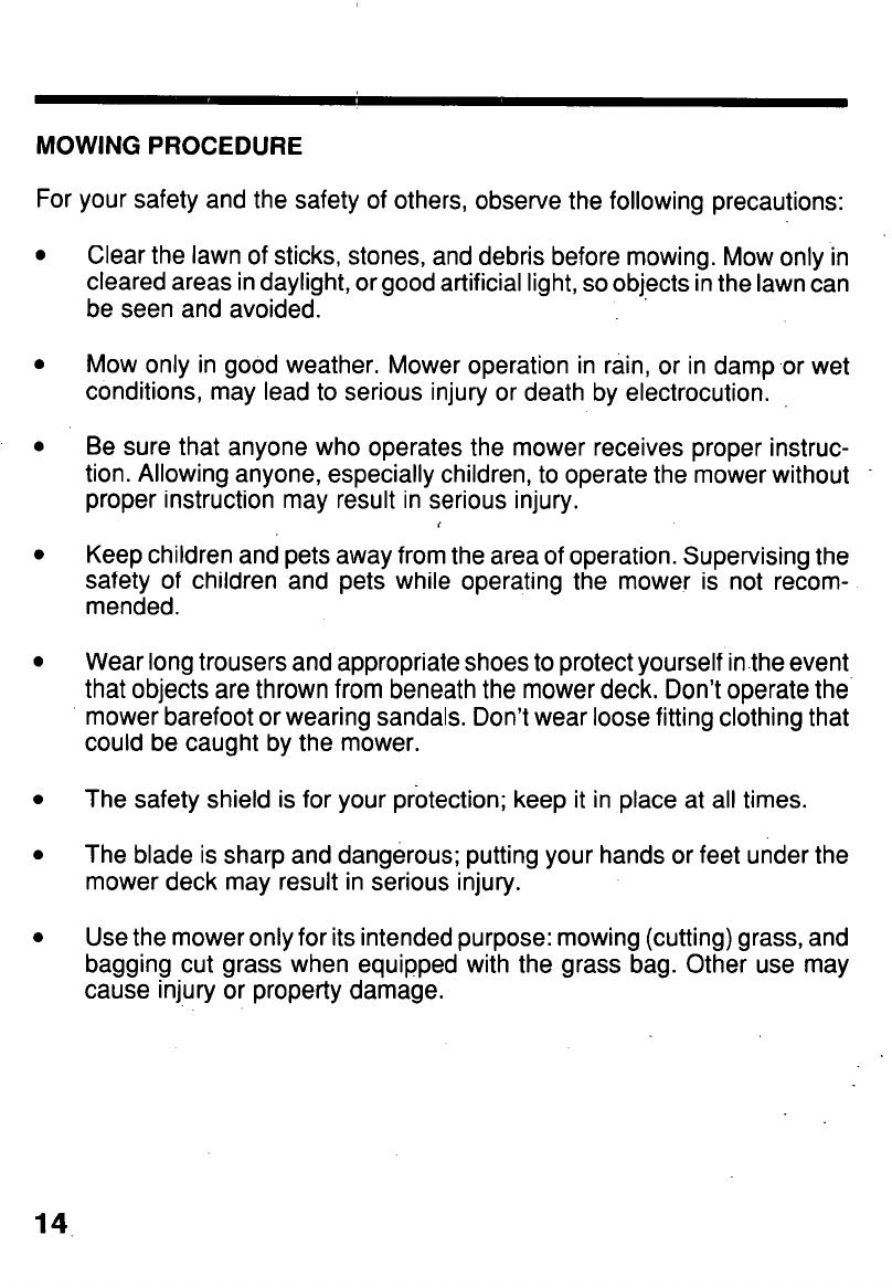 property damage. Use only for mowing (cutting) grass, and bagging