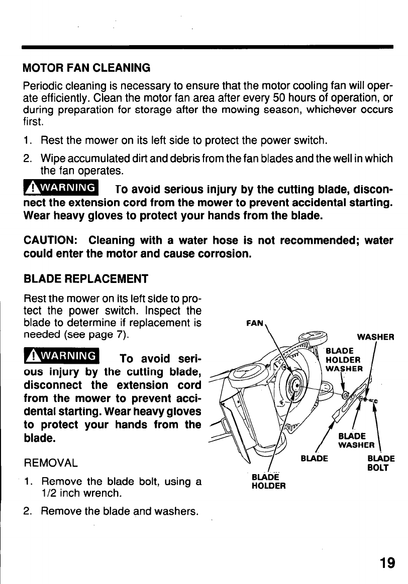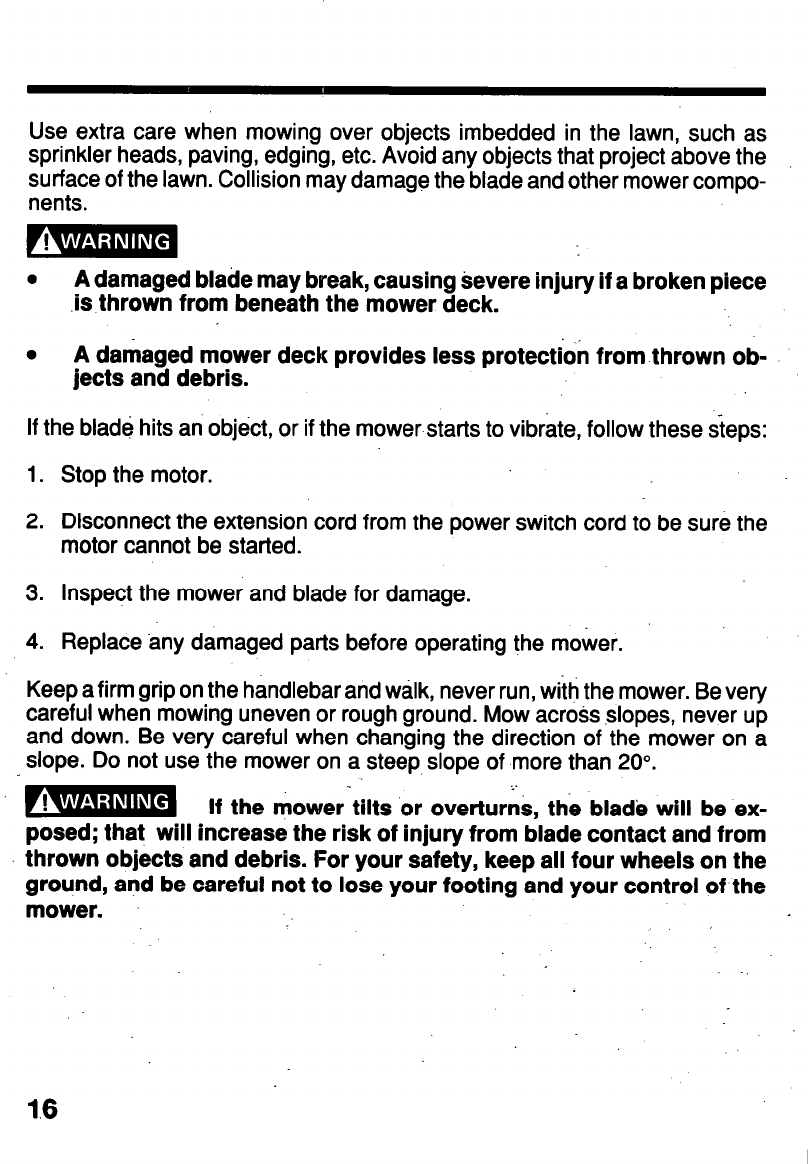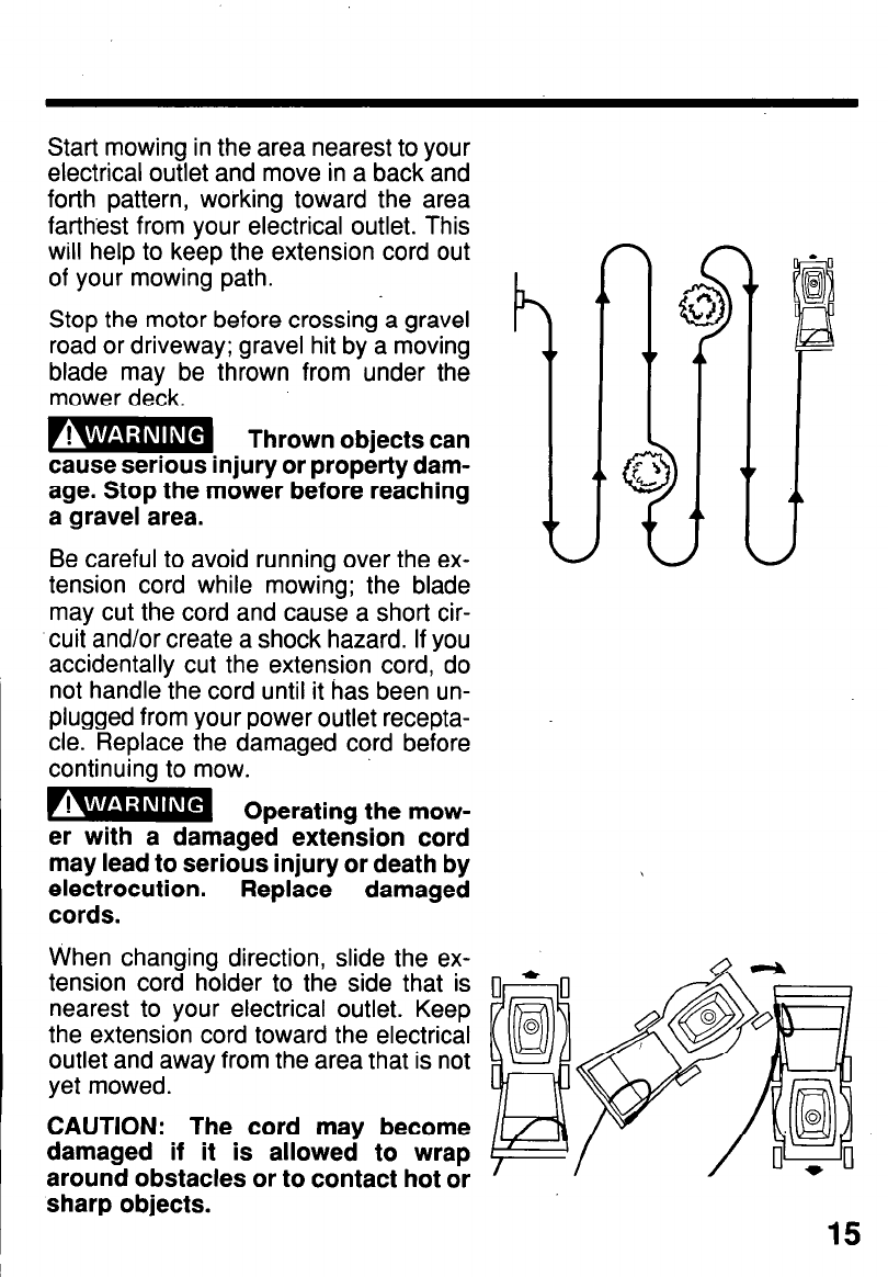 ROTATING MOWER BLADE, ELECTRIC SHOCK, OR THROWN OBJECTS: