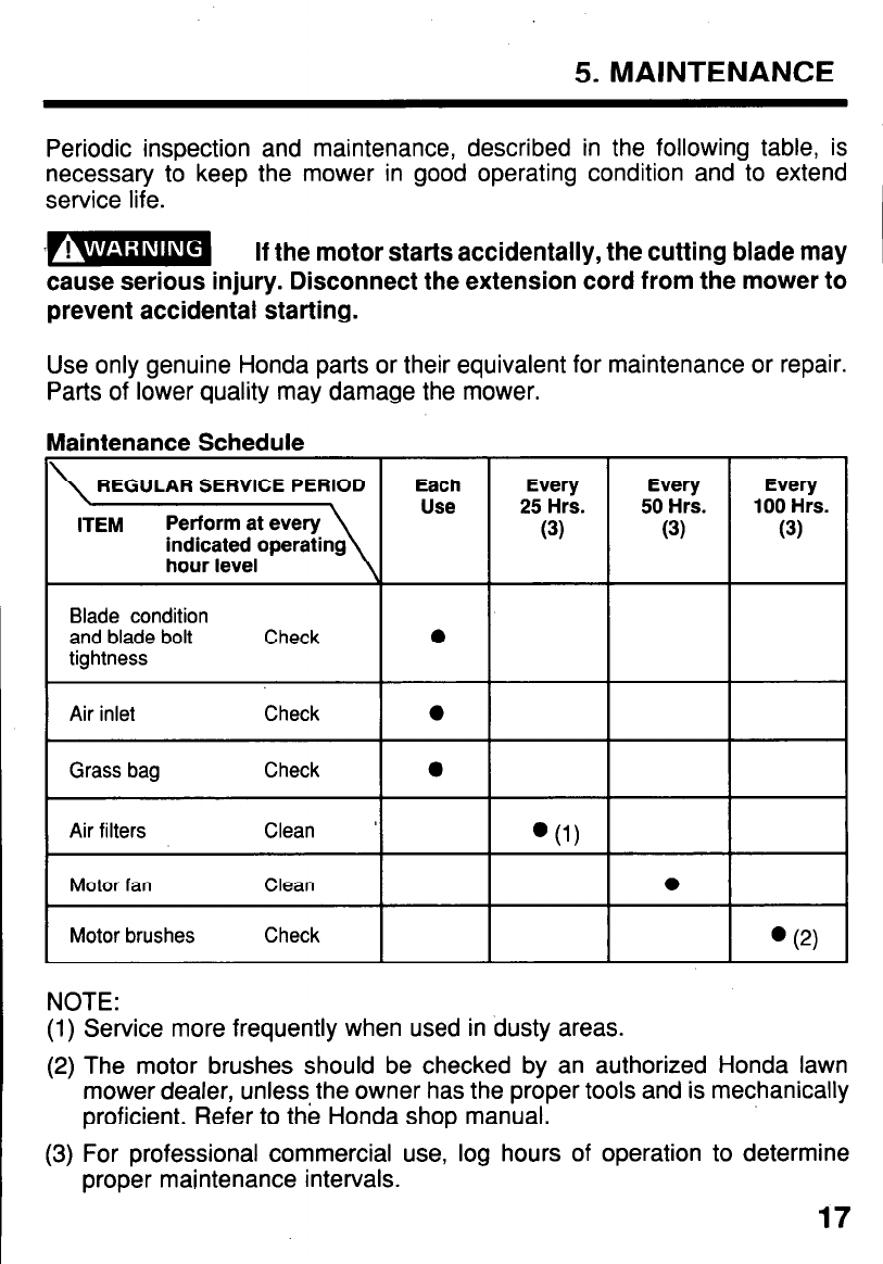 sult an authorized Honda lawn mower dealer.