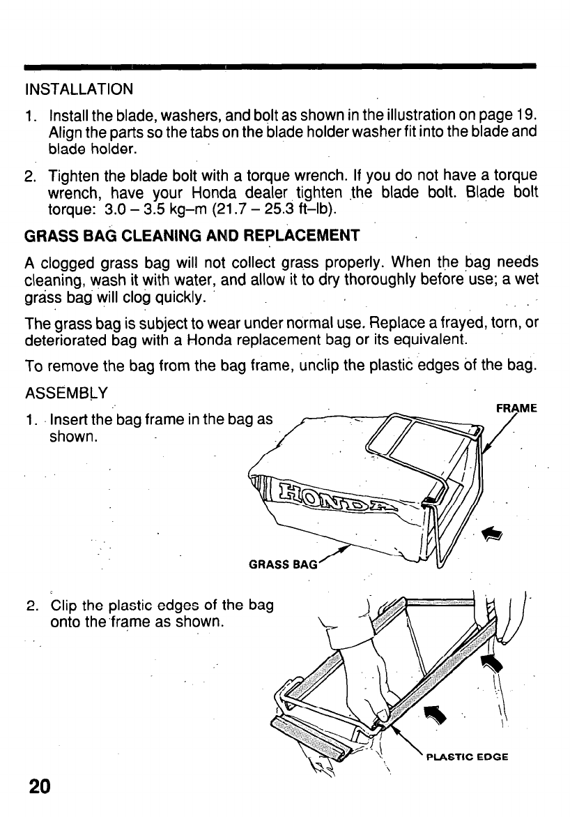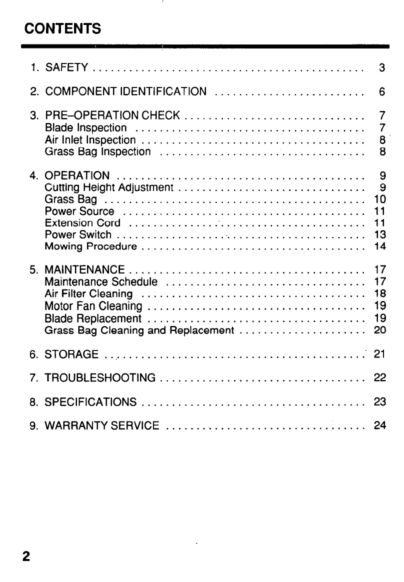 Grass Bag Cleaning and Replacement .....................