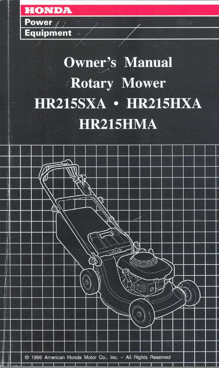 !! Honda Owners Manual-HR215 Series Serial Number MZAM%966224574-Forward Honda Power Equipment Lawn Mower Manuals - Lawn Mower Manuals – The Best Lawn Mower Manuals Collection