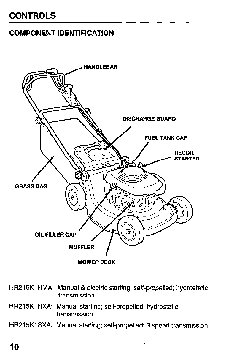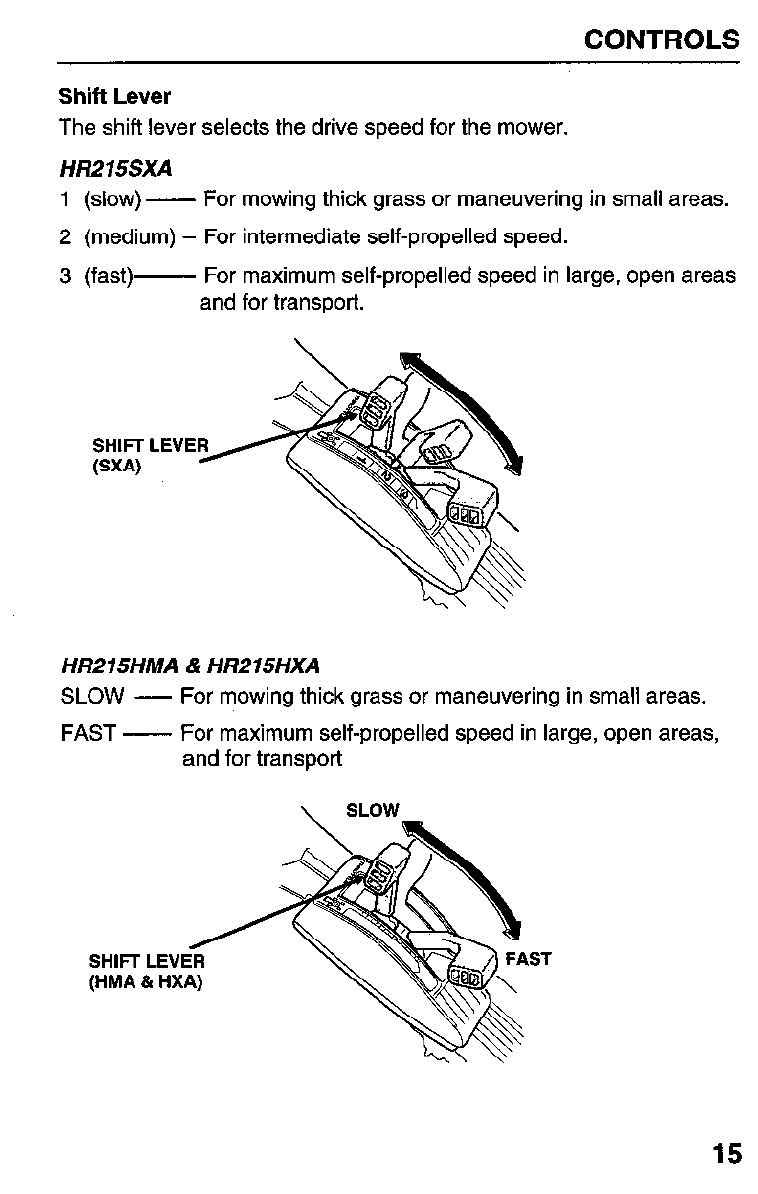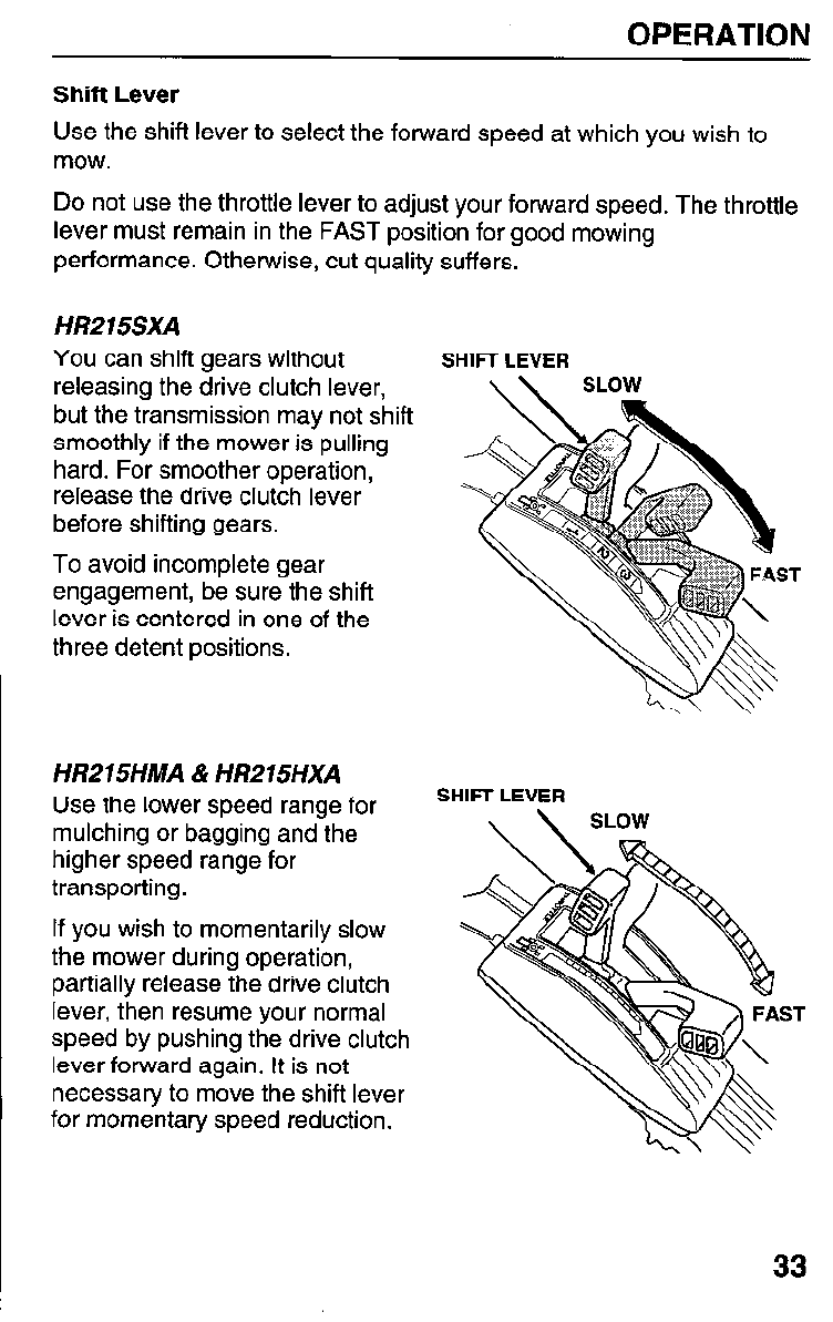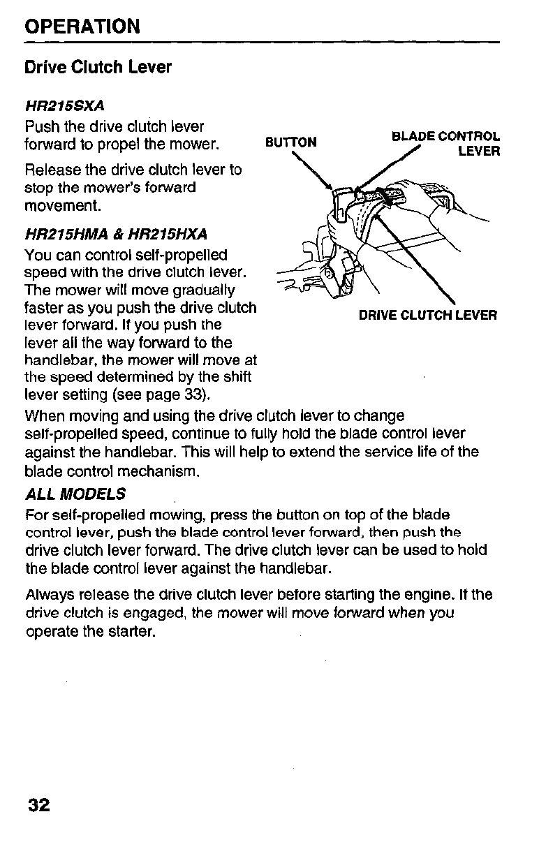 Honda Preview ! Owners Manual HR215 Series Serial Number MZAM–6224574 Forward