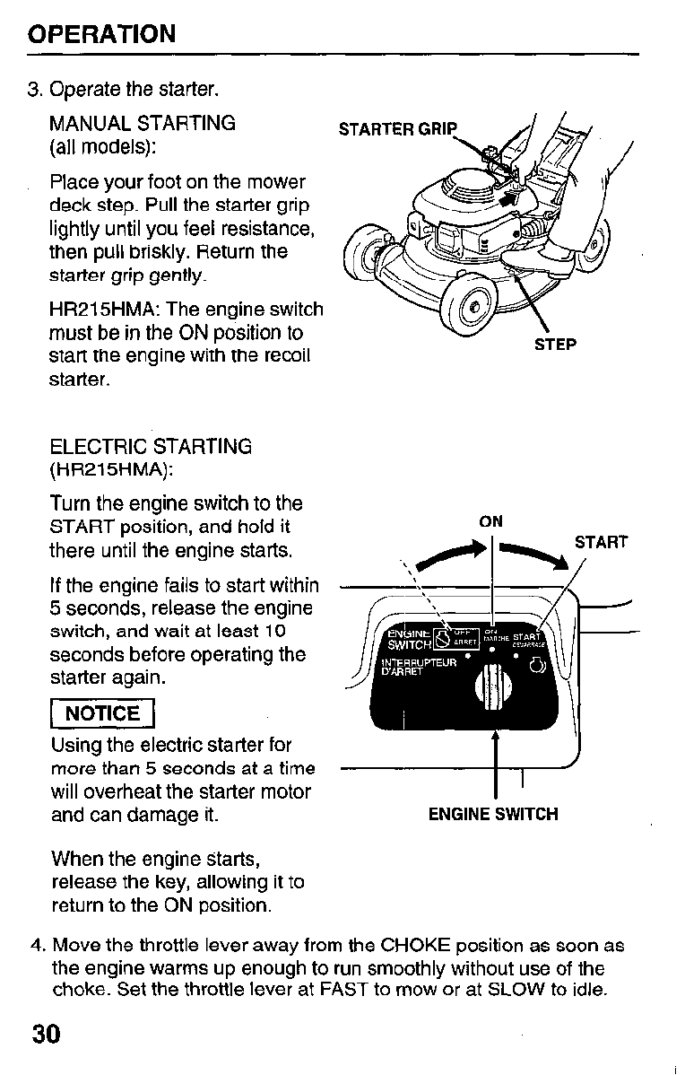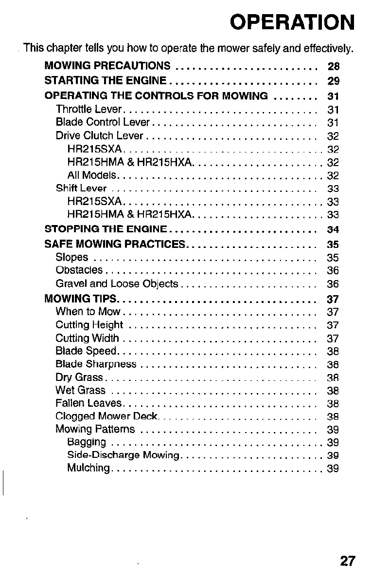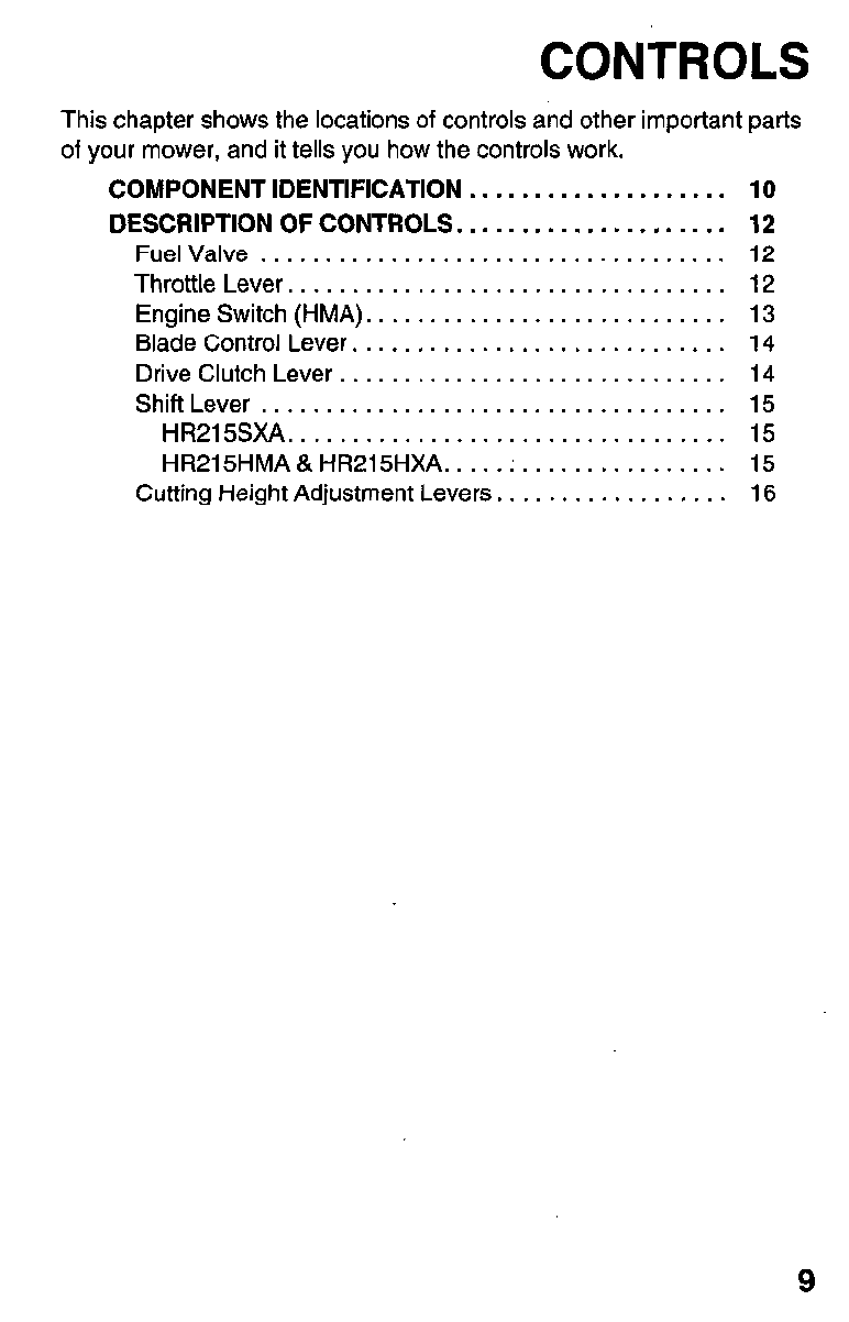 Honda Preview ! Owners Manual HR215 Series Serial Number MZAM–6224574 Forward