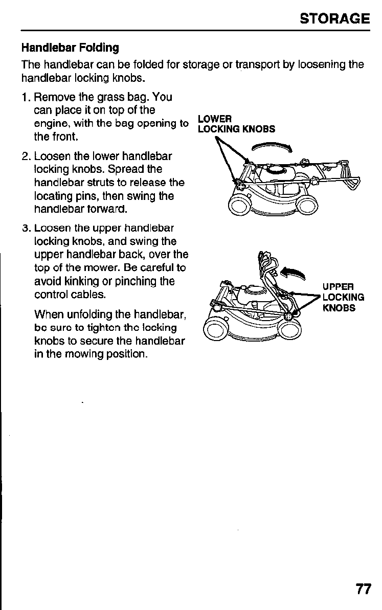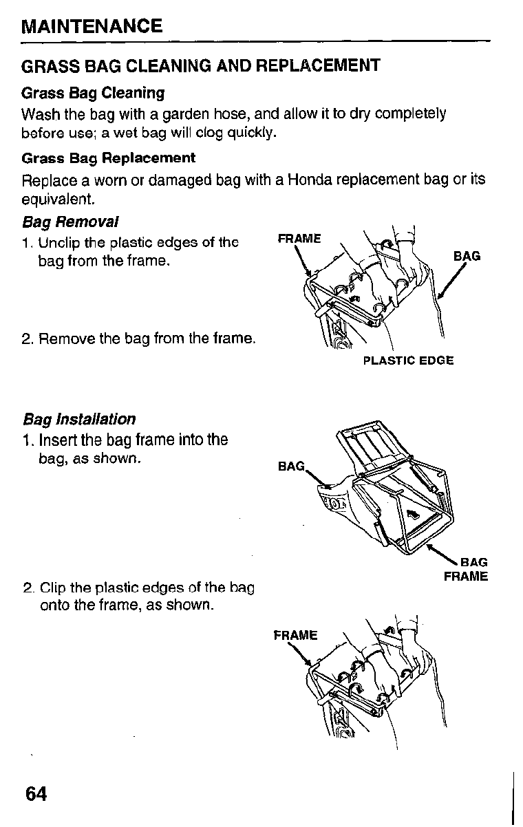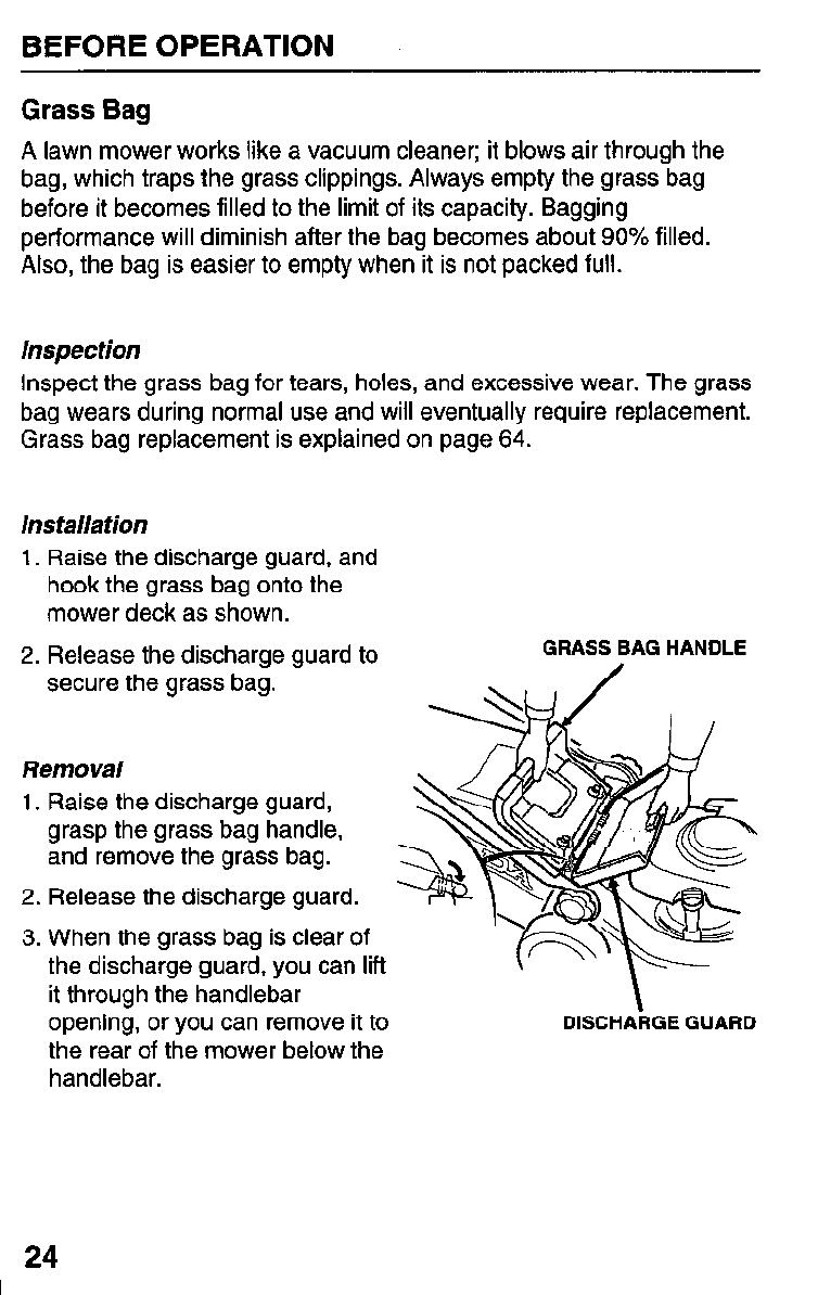 Before each Check grass bag (pages 24 & 64).