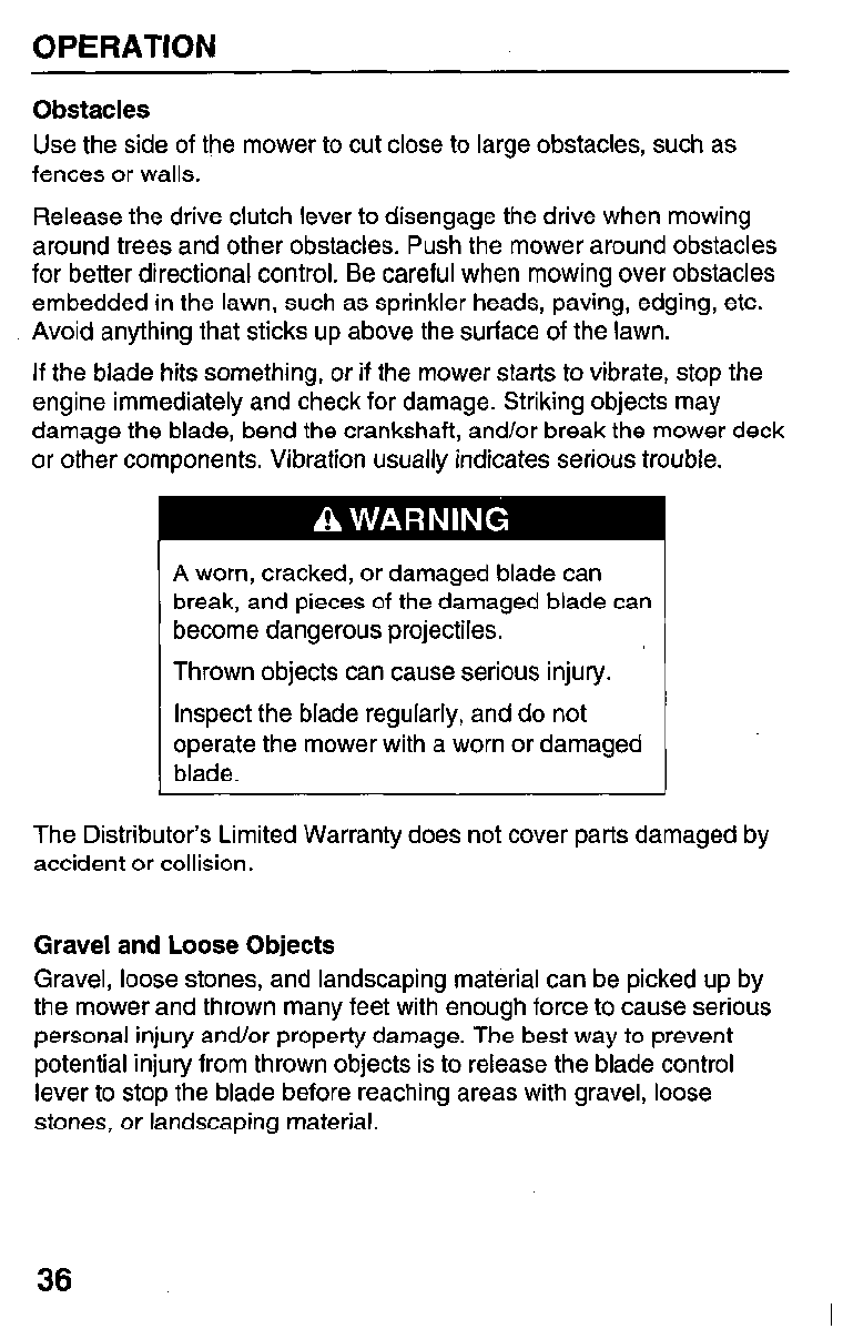 damage to your mower, other property, or the environment.