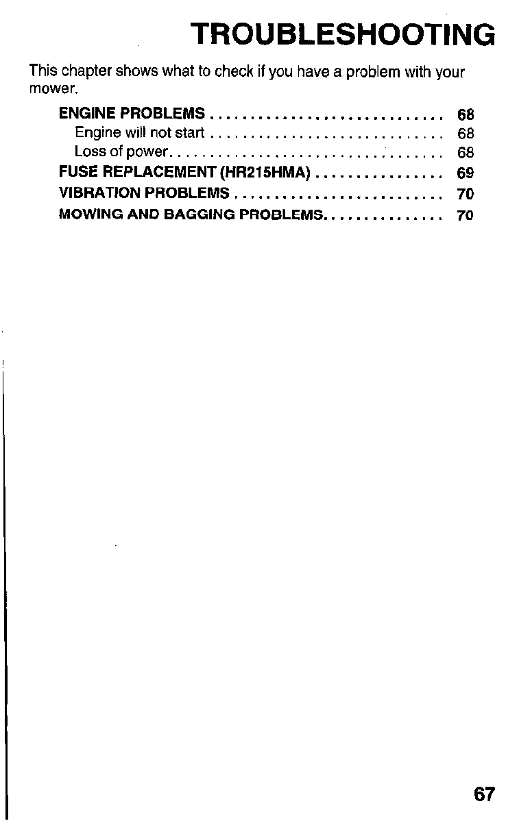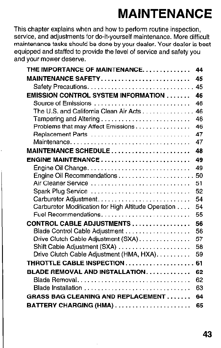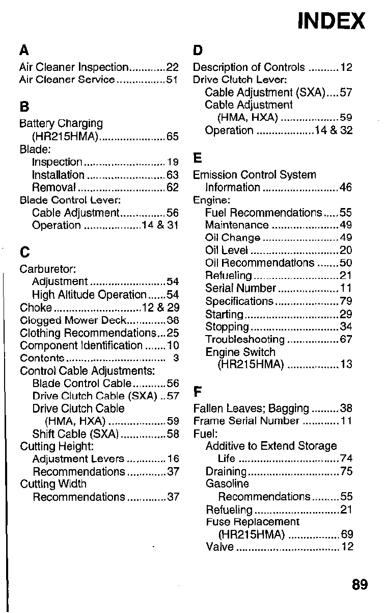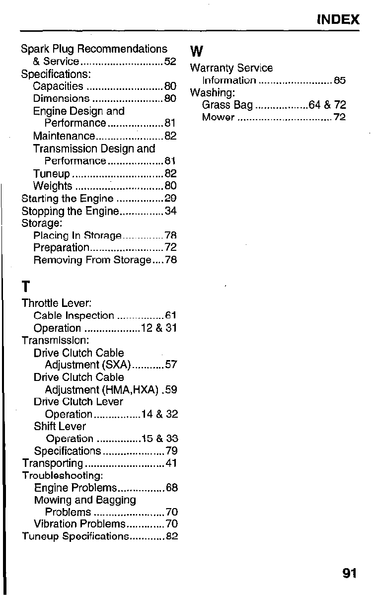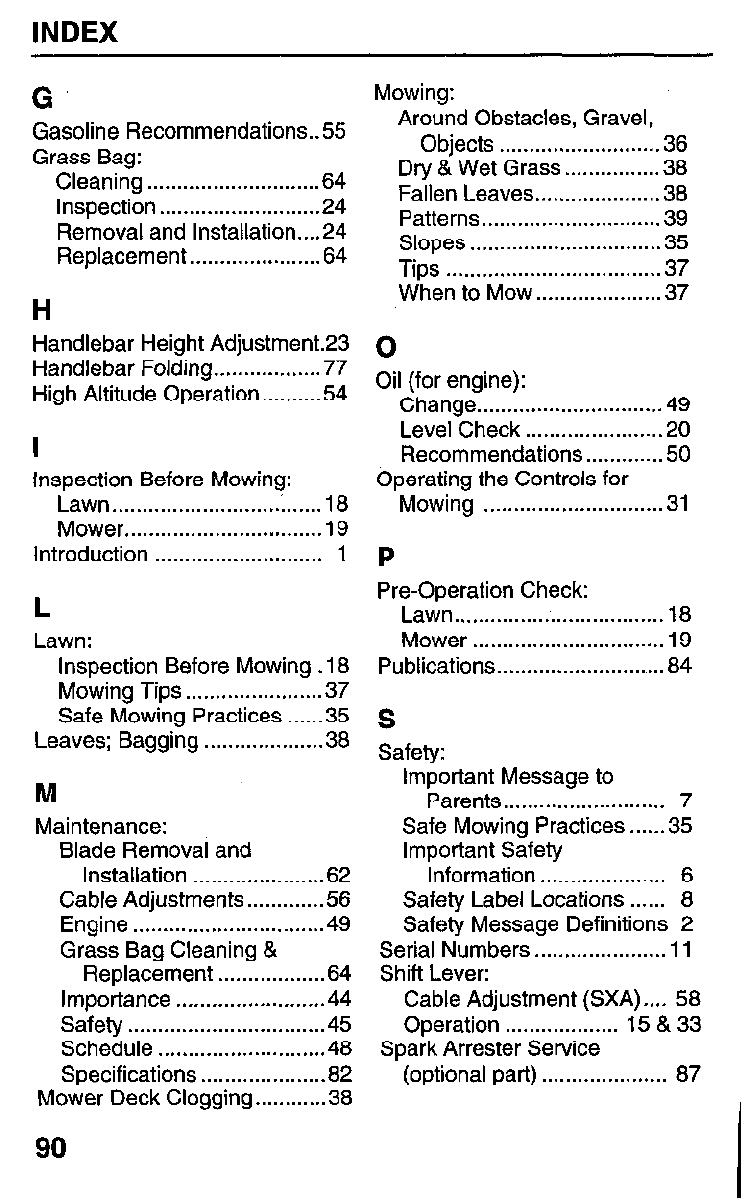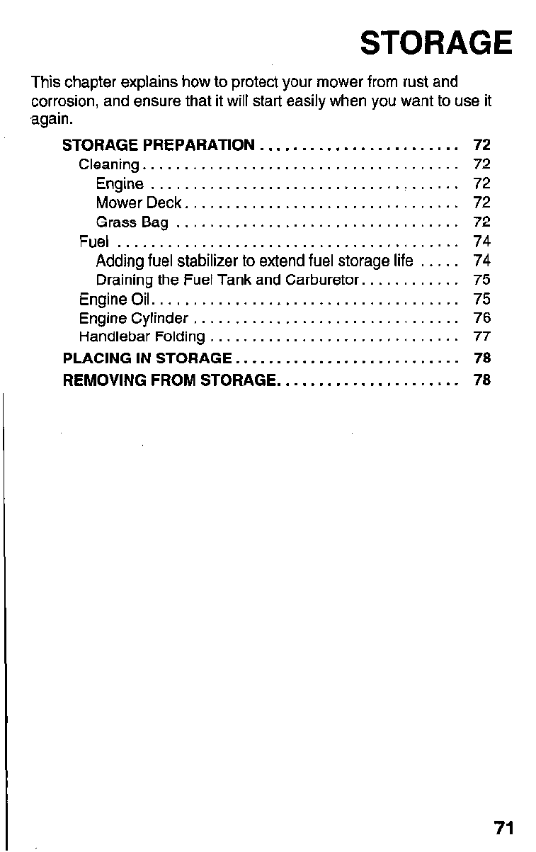 Mower . . . . . . . . . . . . . . . . . . . . . . . . . . . . . . . . 72