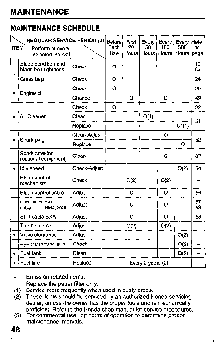 Subsequent Refer to maintenance schedule on page 48.