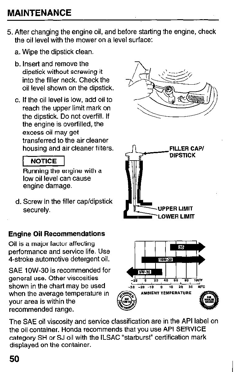 SAE lOW-30, API SH or SJ (page 50)