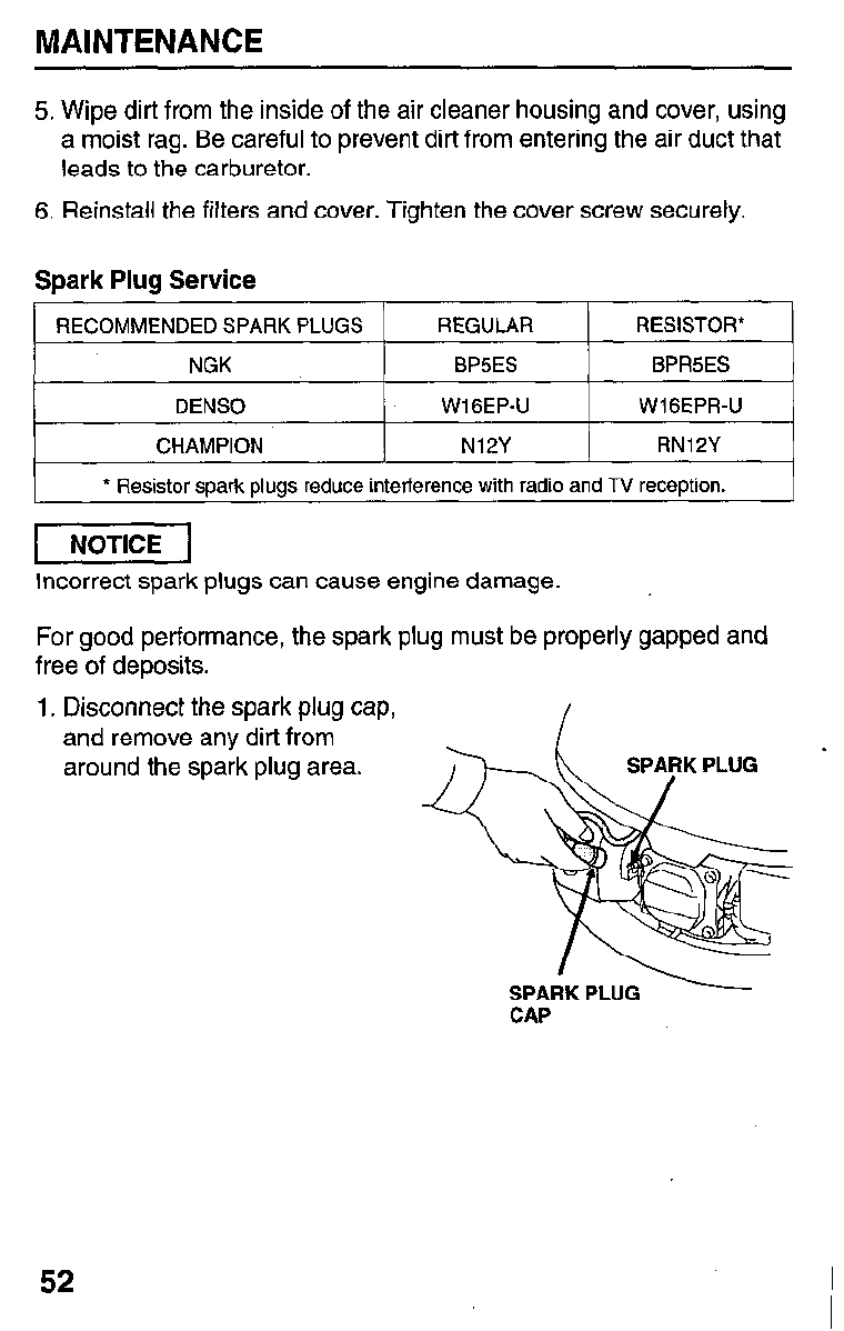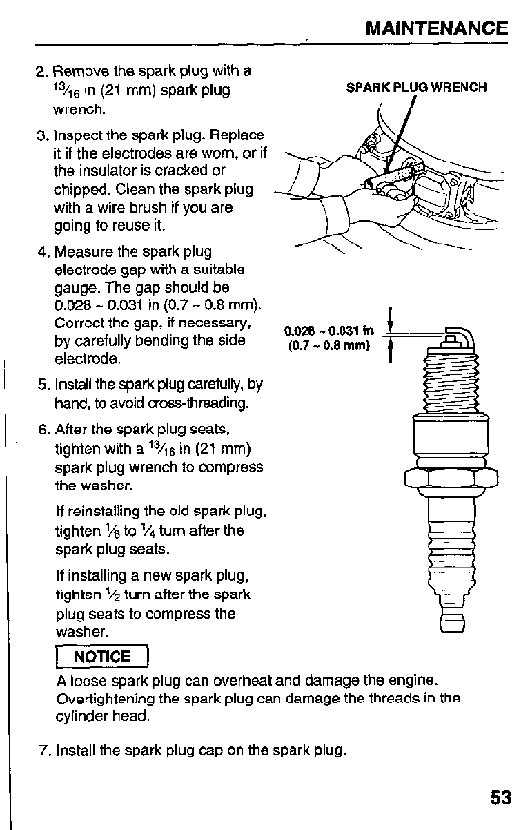 Gap 0.028 - 0.031 in (0.7 - 0.8 mm) (page 53)