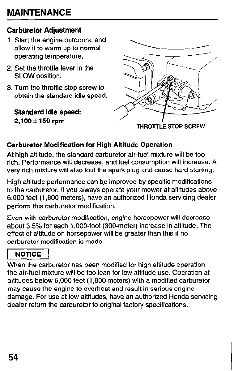 Idle speed 2,100 + 150 rpm (page 54)
