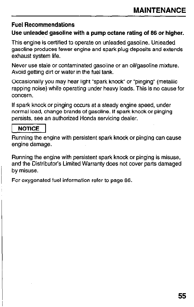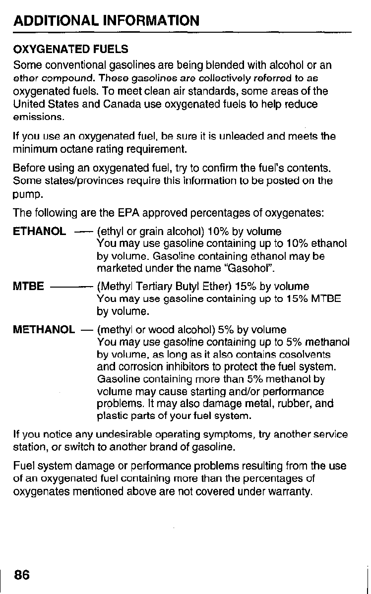 Unleaded gasoline with pump octane rating of 86