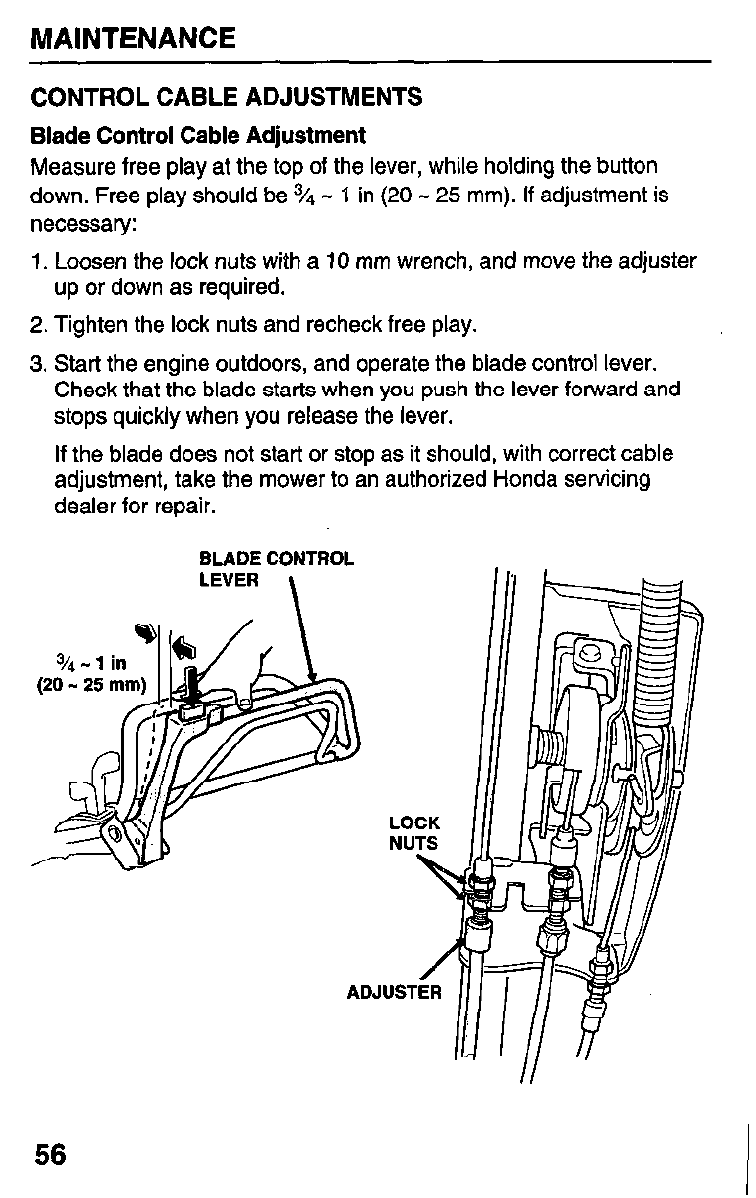First 20 Adjust blade control cable (page 56).