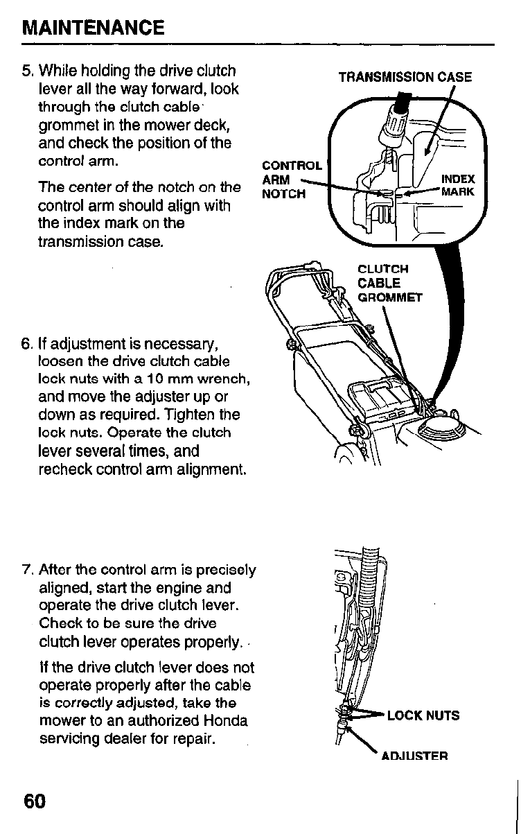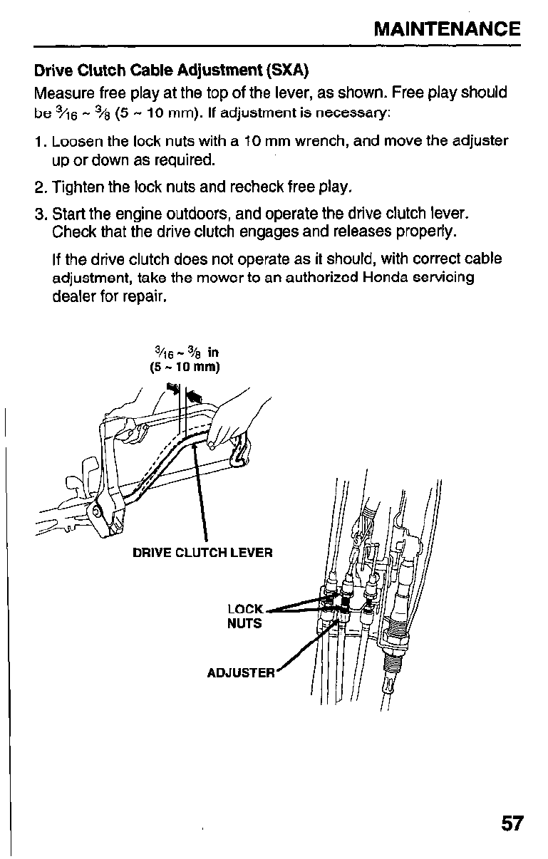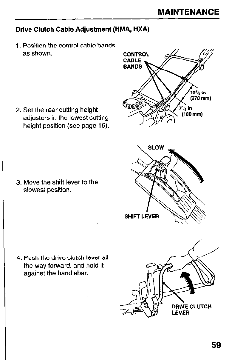 Adjust drive clutch cable HMA, HXA (page 59).