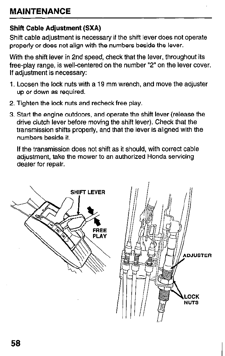 Adjust shift cable SXA (page 58).