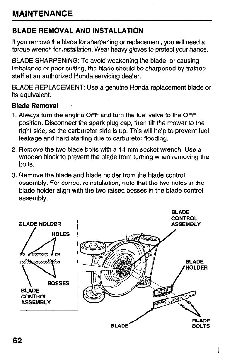 Maintenance Check blade control mechanism (dealer service).