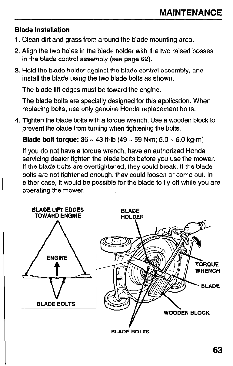 Torque 36-43 ft-lb (49 - 59 Nom, 5.0-6.0 kg-m) (page 63)’