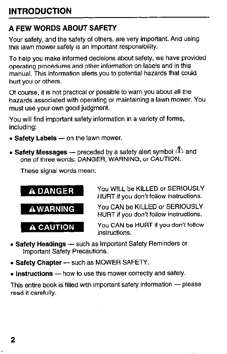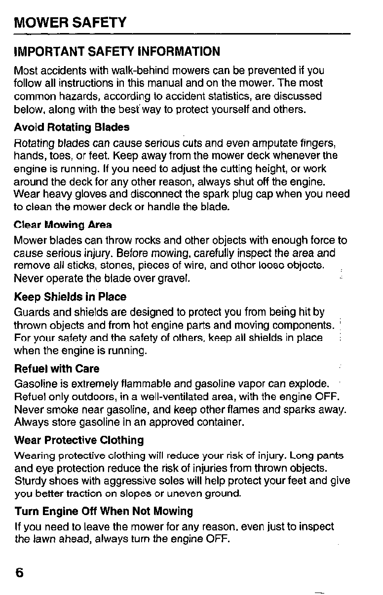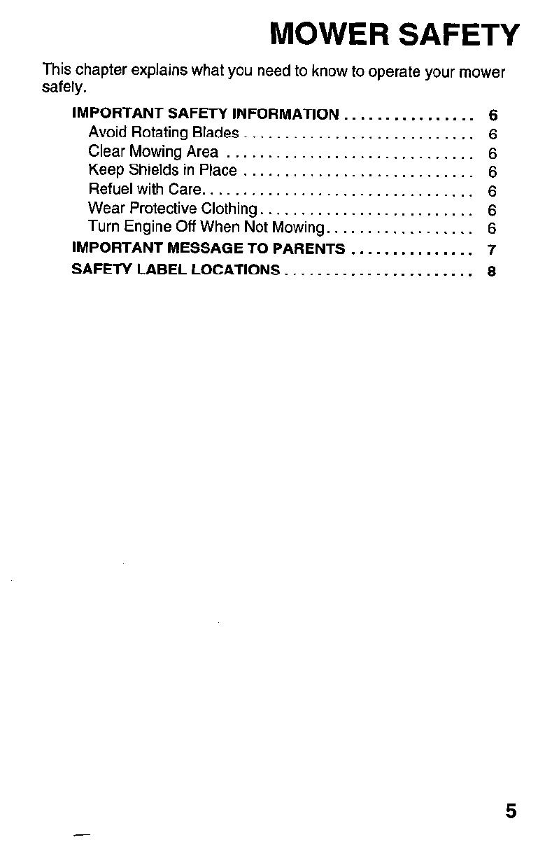 MOWER SAFETY . . . . . . . . . . . . . . . . . . . . . . . . . . . . . . . . . 5