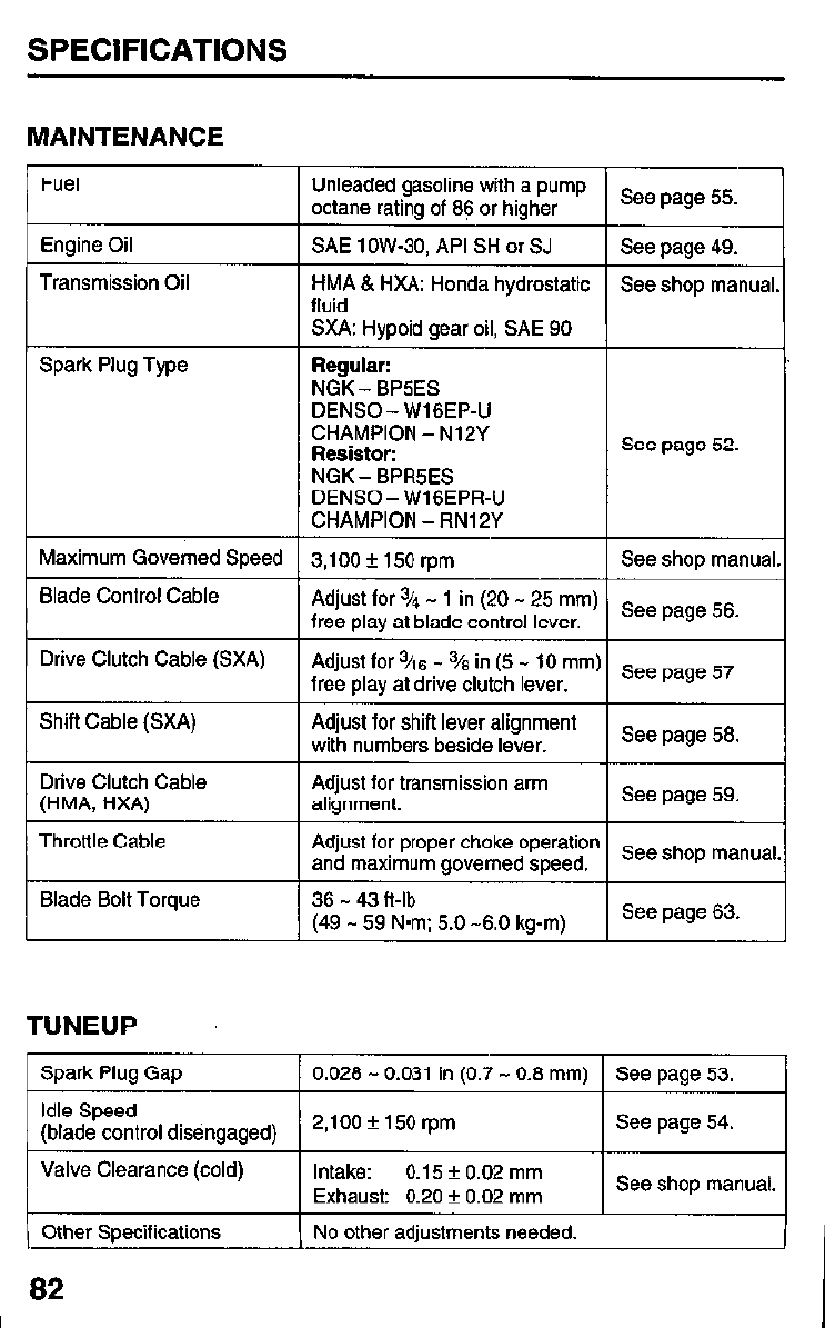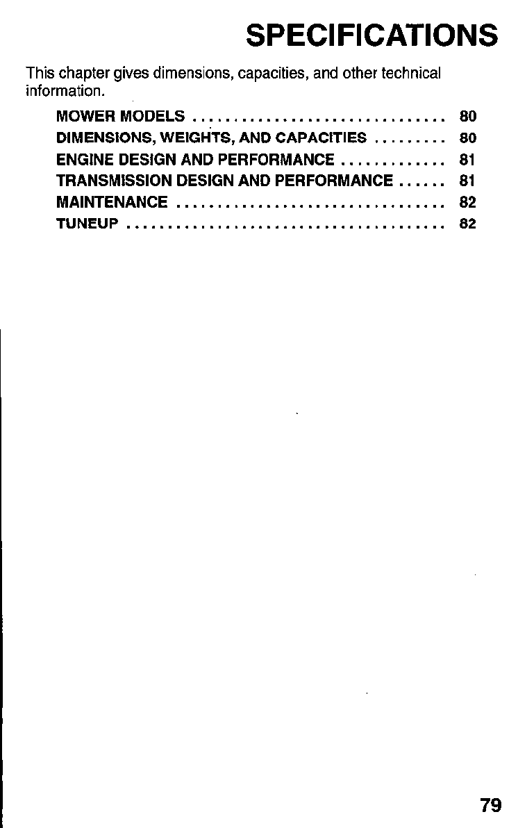 Tuneup Specifications.. ......... .82