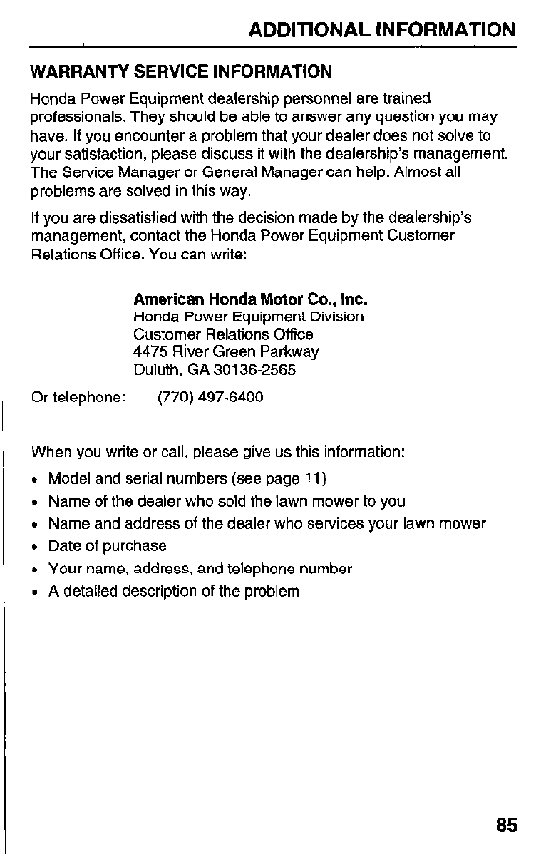 American Honda. Your Honda dealer is dedicated to your satisfaction