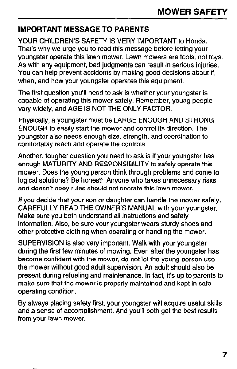 this lawn mower safely is an important responsibility.