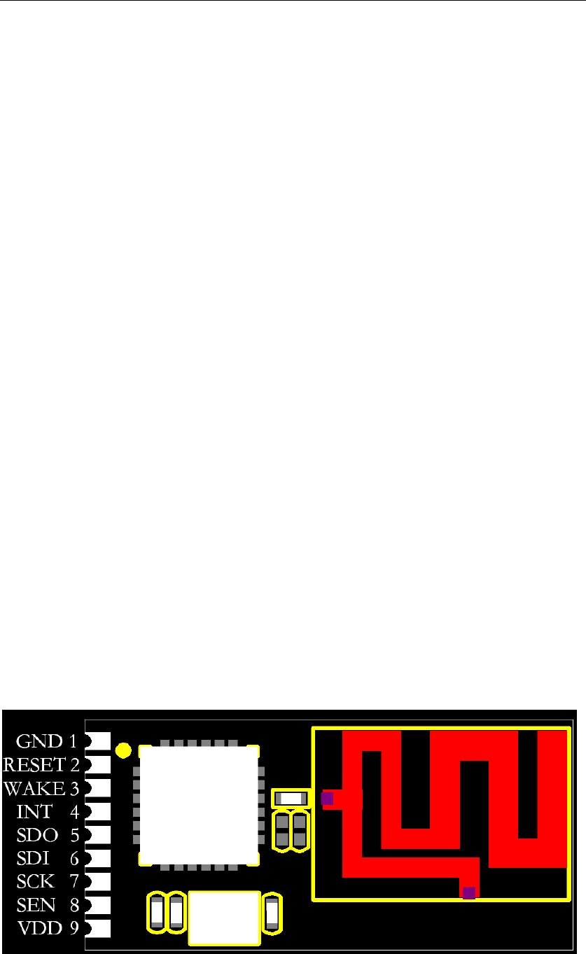 SDI, SDO and CS), RESET, WAKE, INT and CLKOUT pins are brought out to the module
