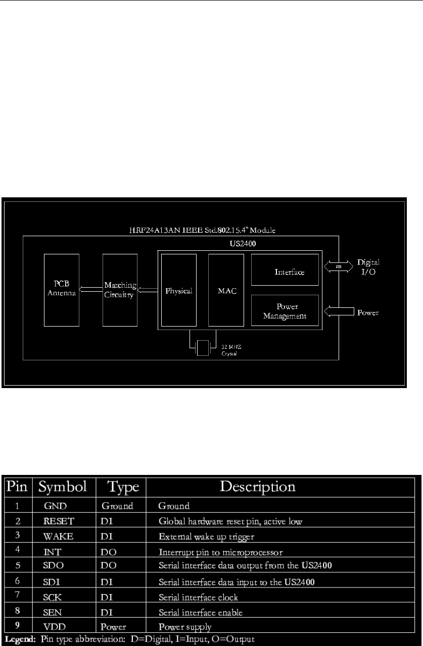 block within a single chip. The HRF24A13AN can be controlled by a microprocessor