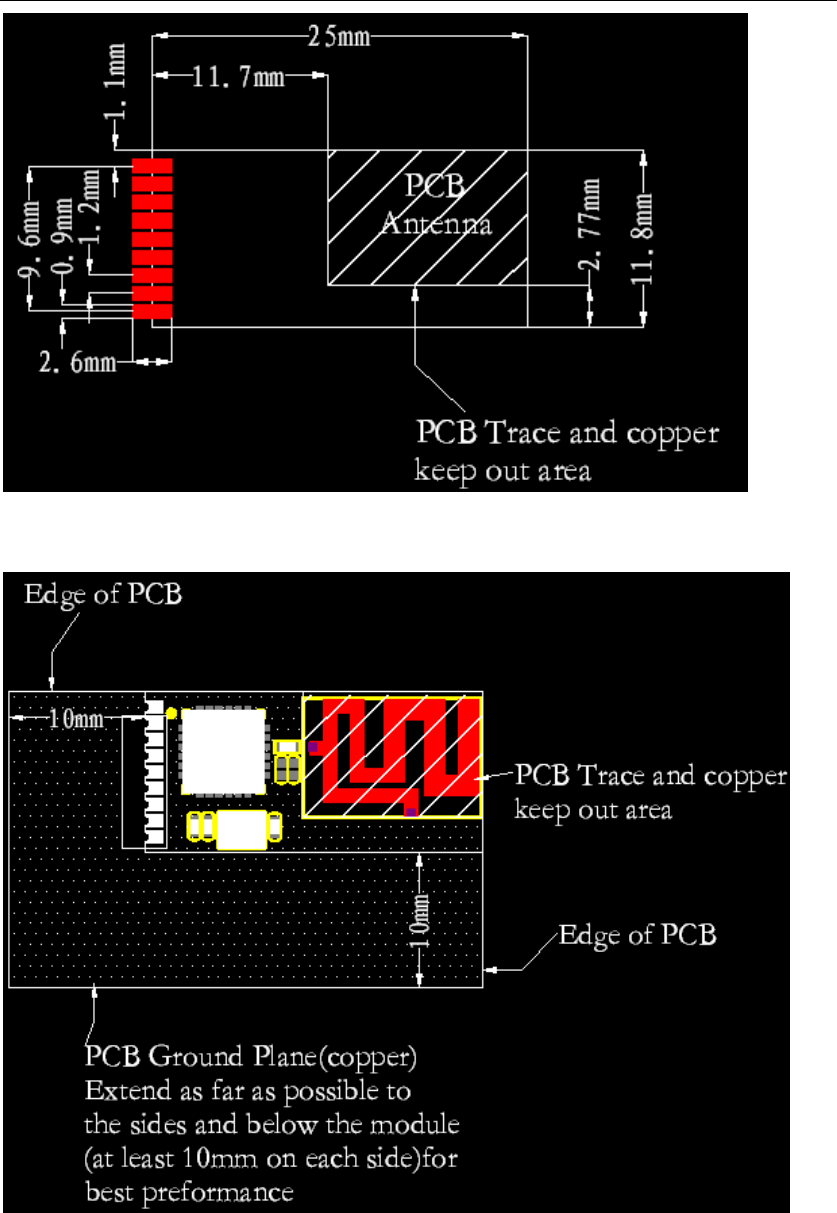 antenna, approximately 1.2", be kept clear of metal objects. A host PCB ground plane