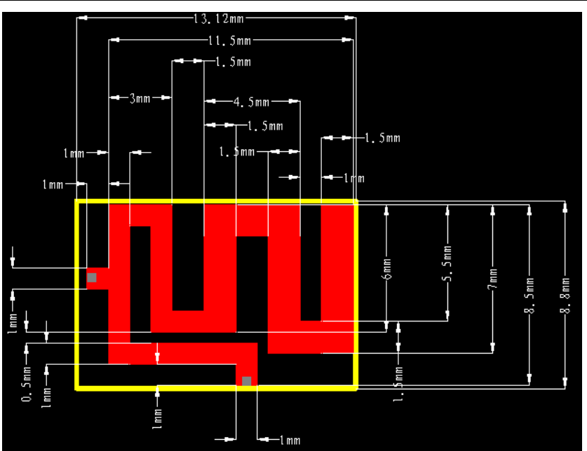The PCB antenna is fabricated on the top copper trace. Figure 11 shows the trace